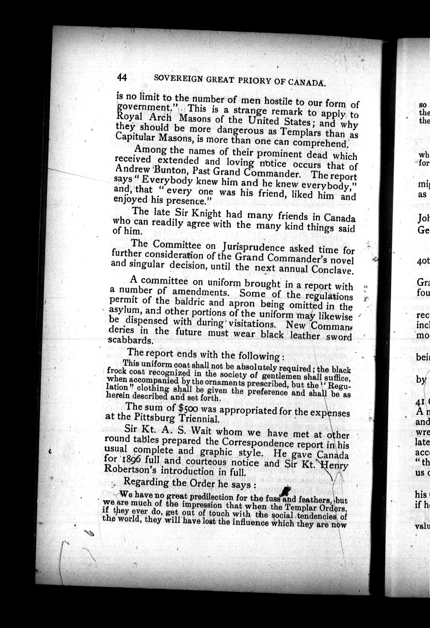 - Montreal, P.Q. : Published by the Sovereign Great Priory of Canada, 1898