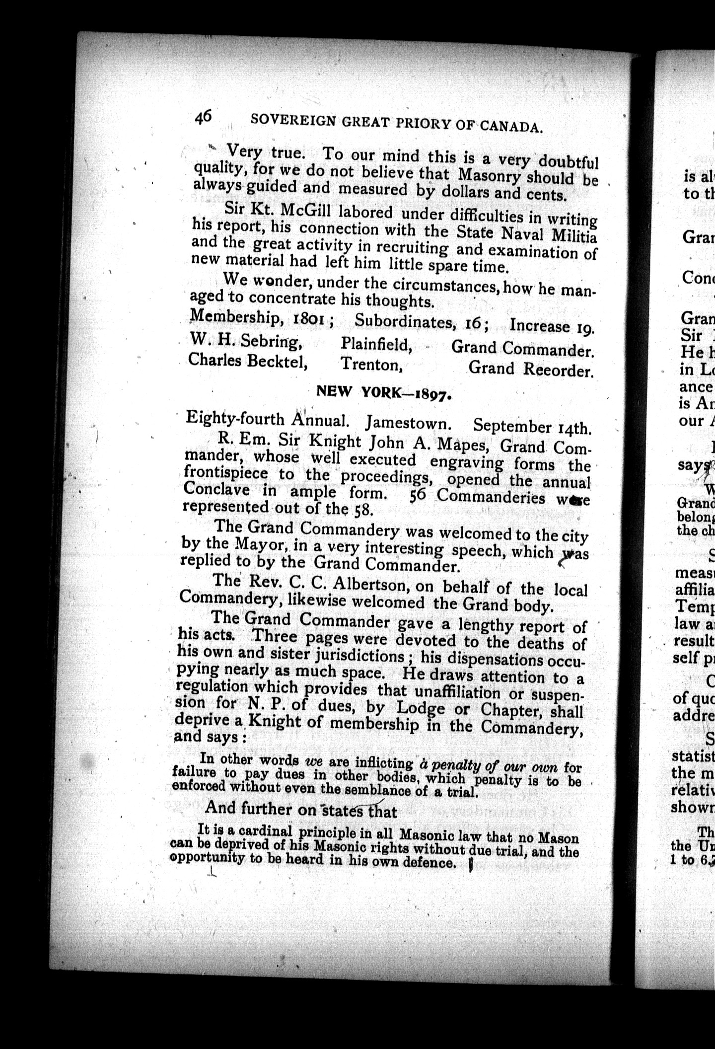 Montreal, P.Q. : Published by the Sovereign Great Priory of Canada, 1898; 208 images avec recherche en texte intégral