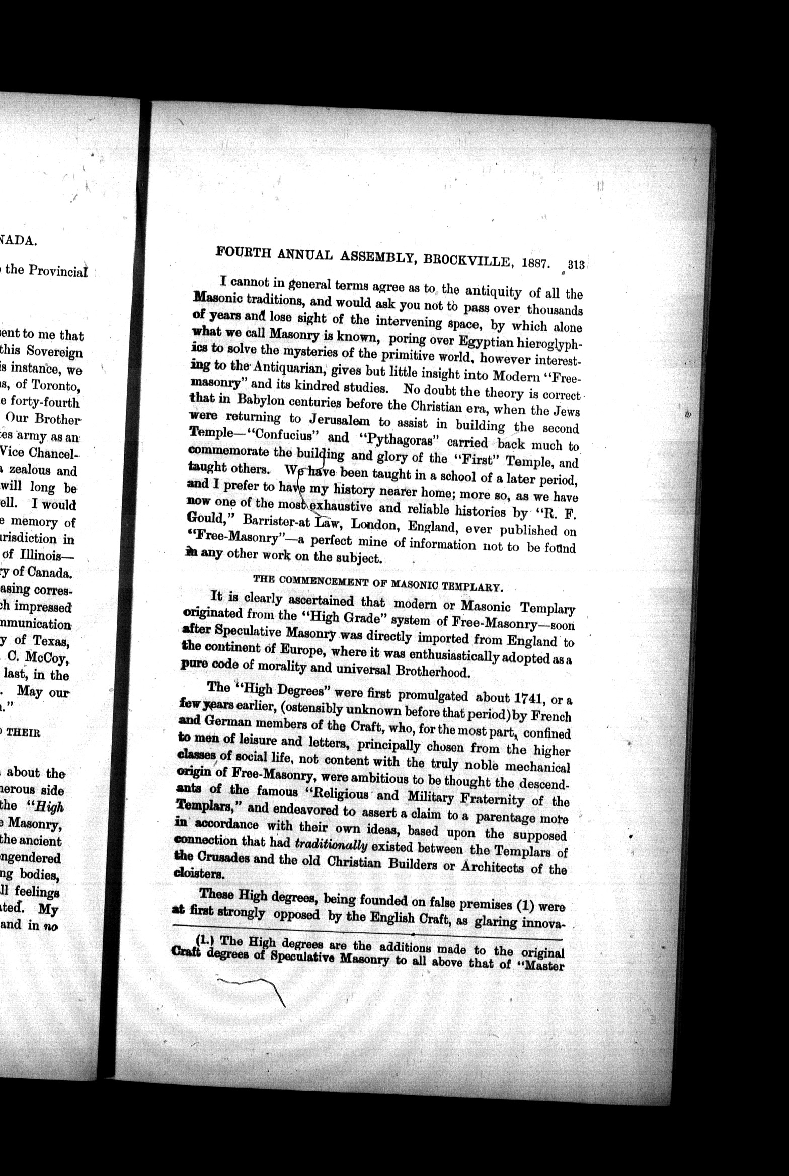 Proceedings of the Sovereign Great Priory, Knights Templar, of Canada, at the ... annual assembly : Proceedings of the Sovereign Great Priory, Knights Templar of Canada, at the special assembly ... and at the fourth annual assembly, held in Brockville, Ontario on Tuesday, July 12, 1887 : Special/Fourth (1887)