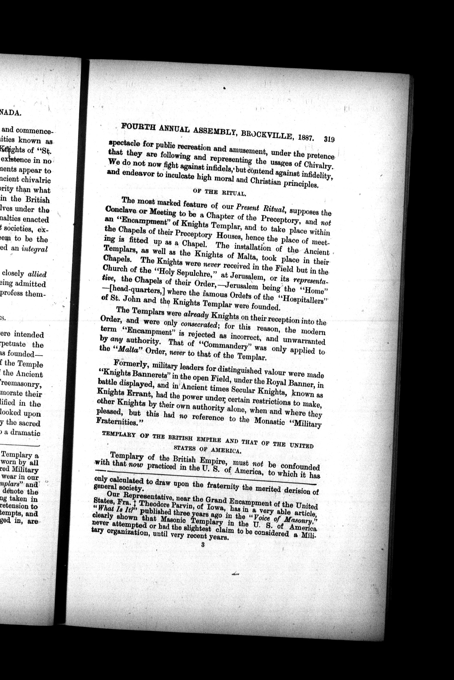 - Proceedings of the Sovereign Great Priory, Knights Templar of Canada, at the special assembly ... and at the fourth annual assembly, held in Brockville, Ontario on Tuesday, July 12, 1887 : Special/Fourth (1887)