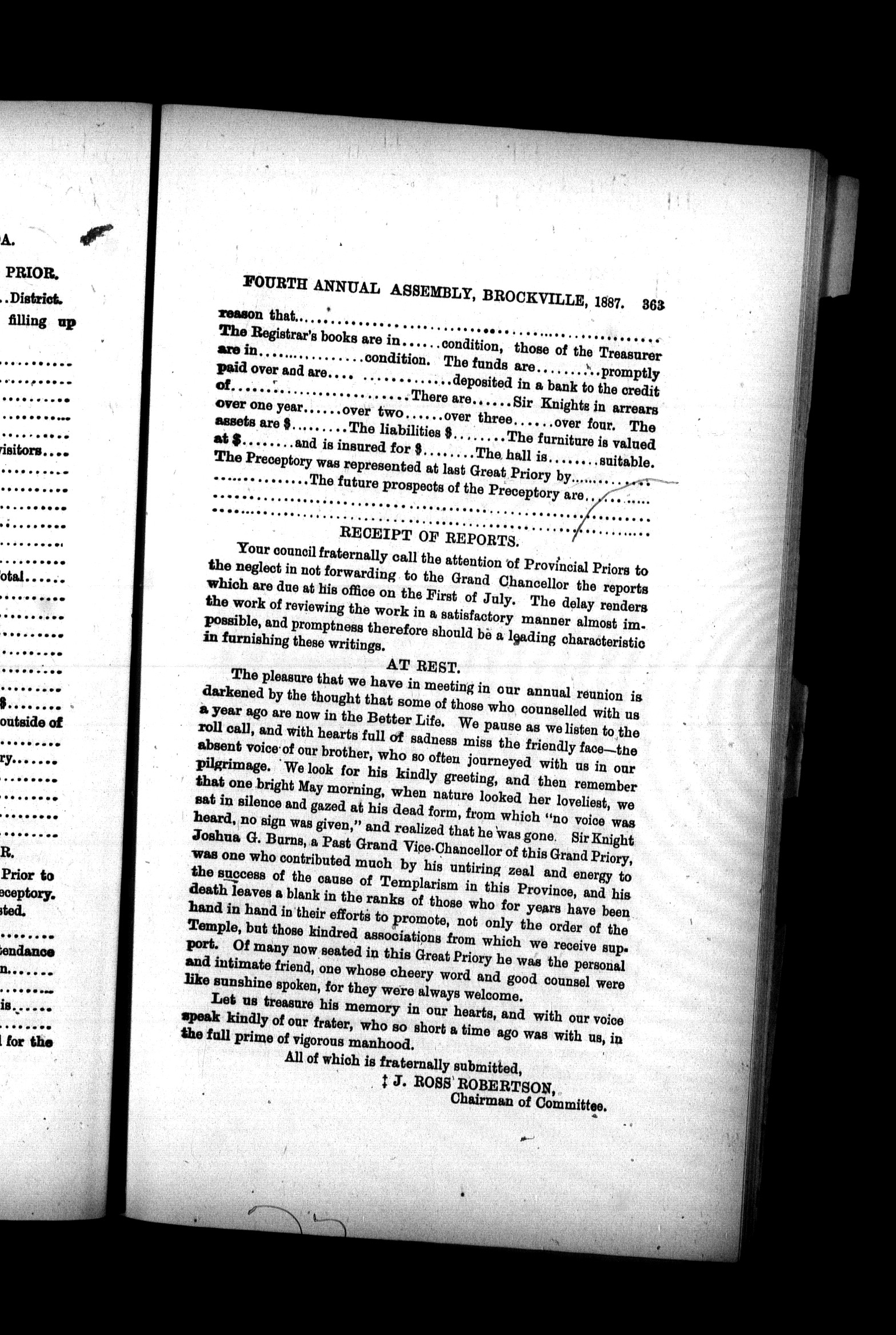 Proceedings of the Sovereign Great Priory, Knights Templar, of Canada, at the ... annual assembly : Proceedings of the Sovereign Great Priory, Knights Templar of Canada, at the special assembly ... and at the fourth annual assembly, held in Brockville, Ontario on Tuesday, July 12, 1887 : Special/Fourth (1887)