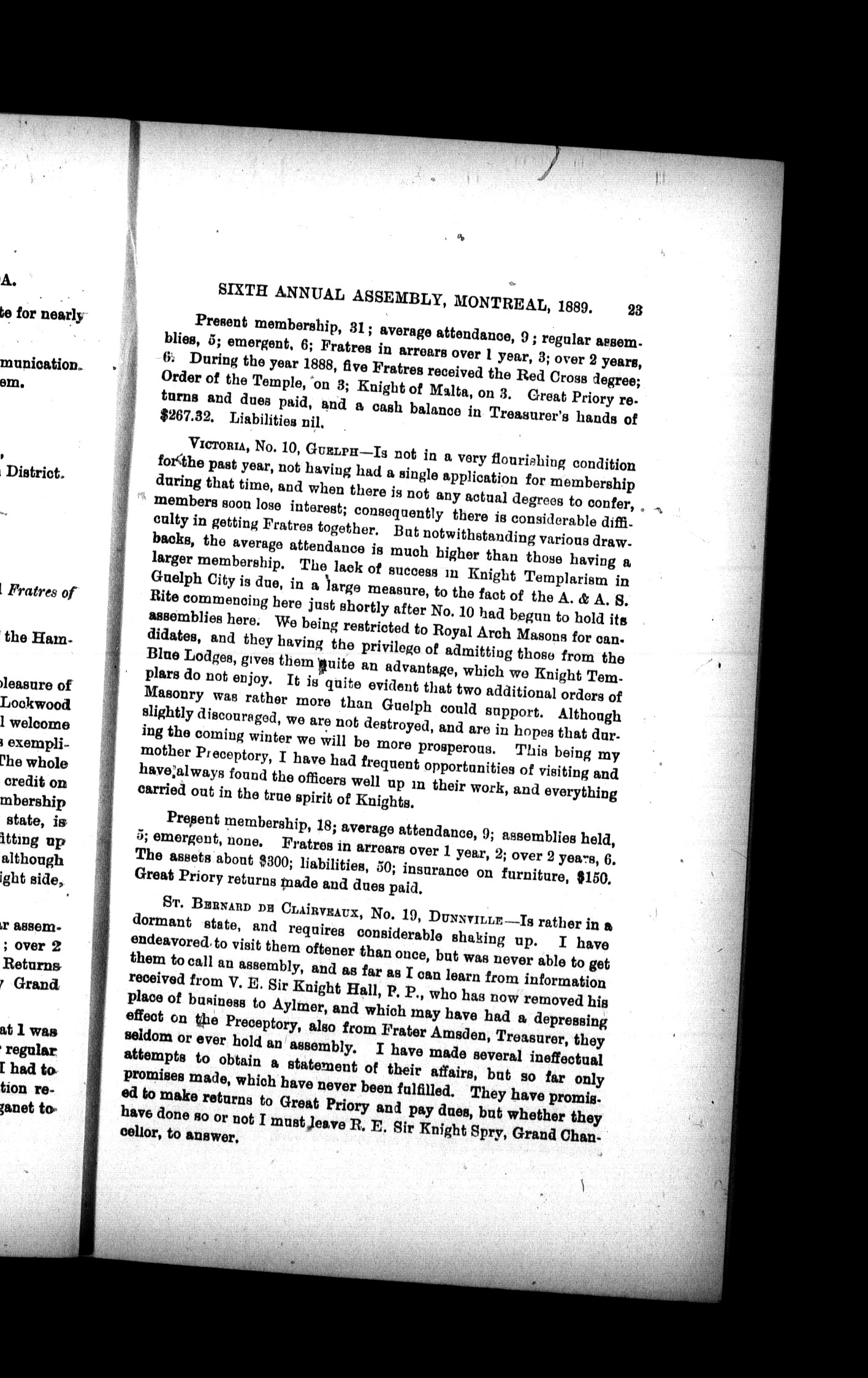 - Proceedings of the Sovereign Great Priory, Knights Templar of Canada, at the sixth annual assembly : Sixth (1889)