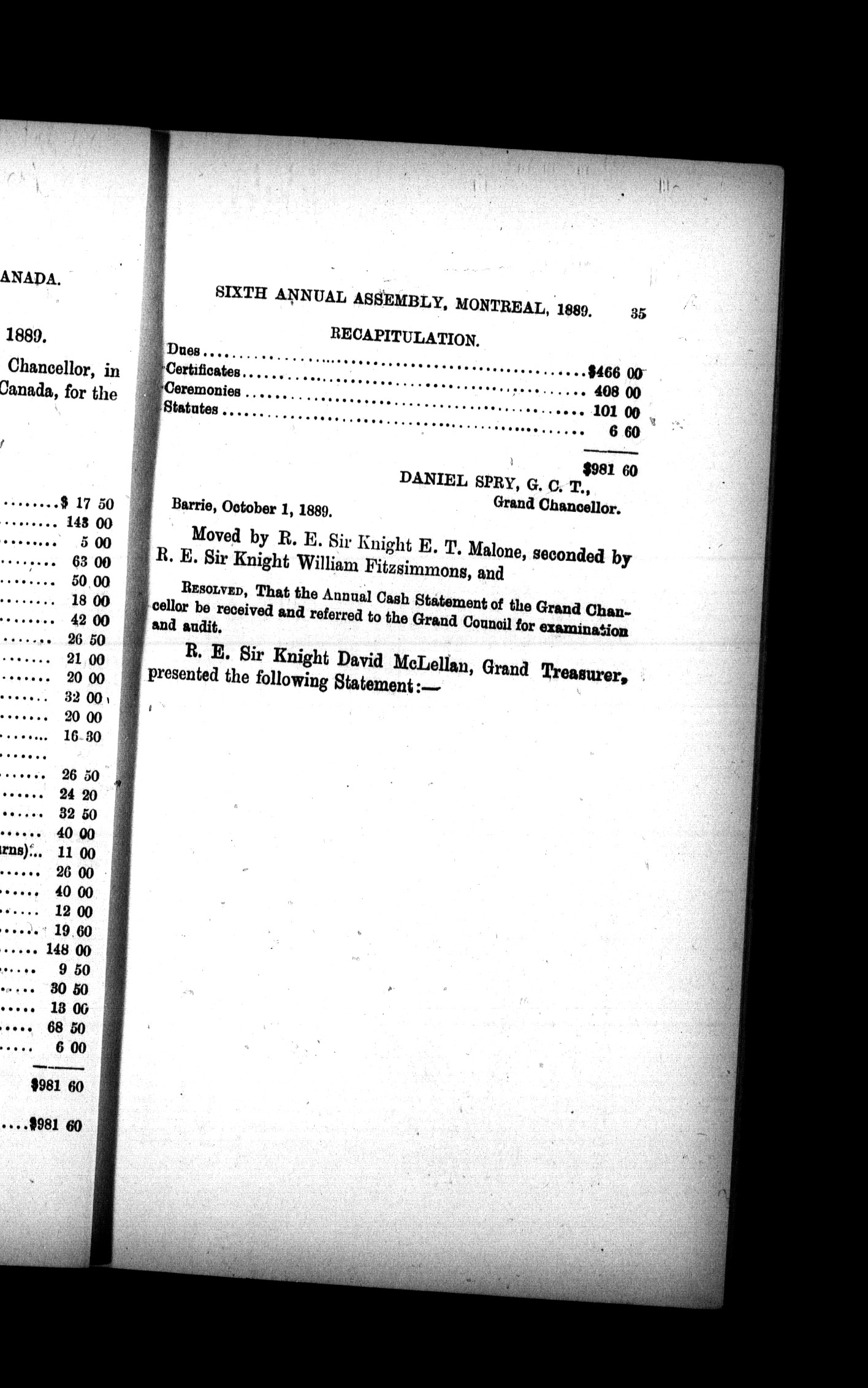 - Proceedings of the Sovereign Great Priory, Knights Templar of Canada, at the sixth annual assembly : Sixth (1889)