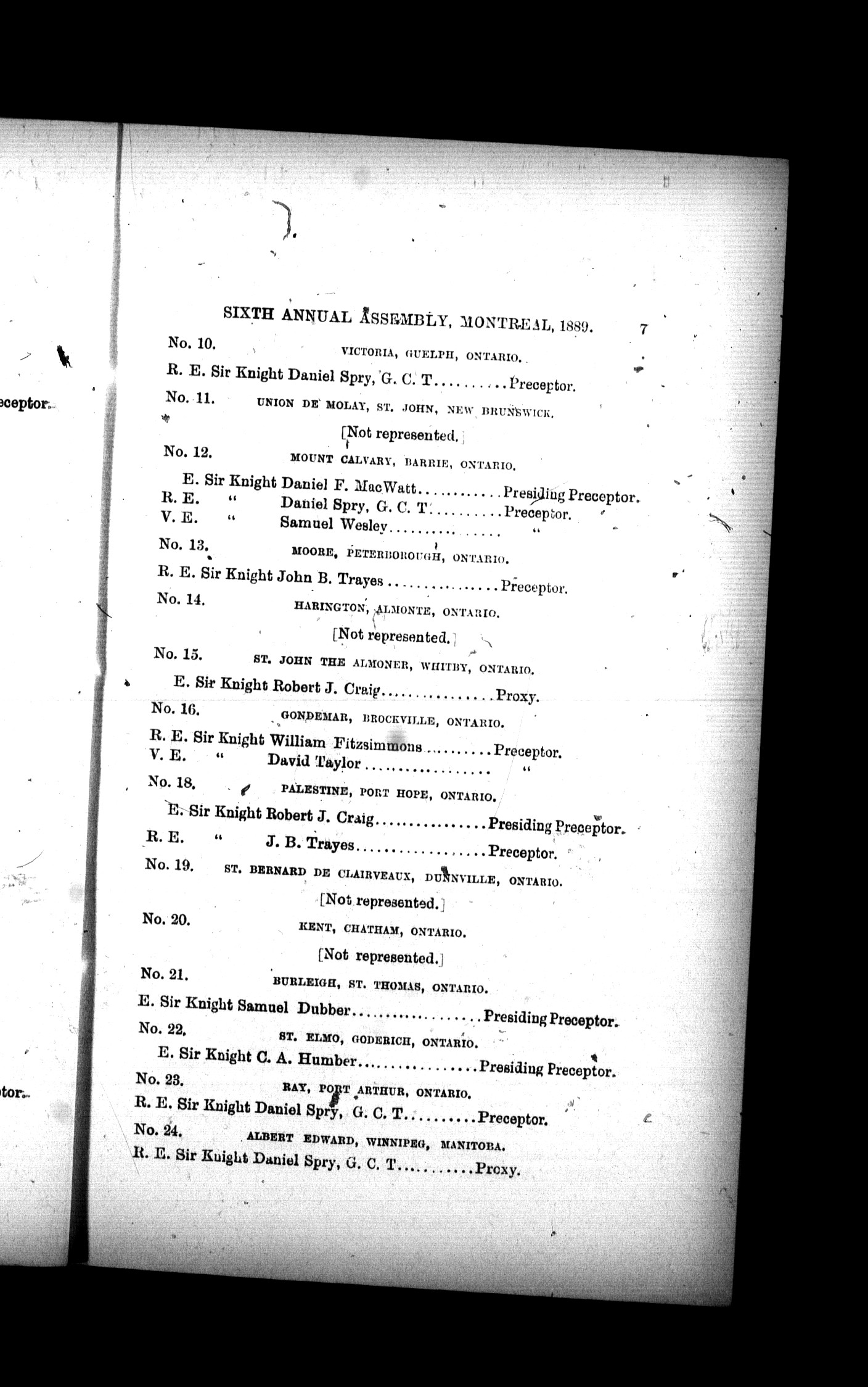 - Proceedings of the Sovereign Great Priory, Knights Templar of Canada, at the sixth annual assembly : Sixth (1889)