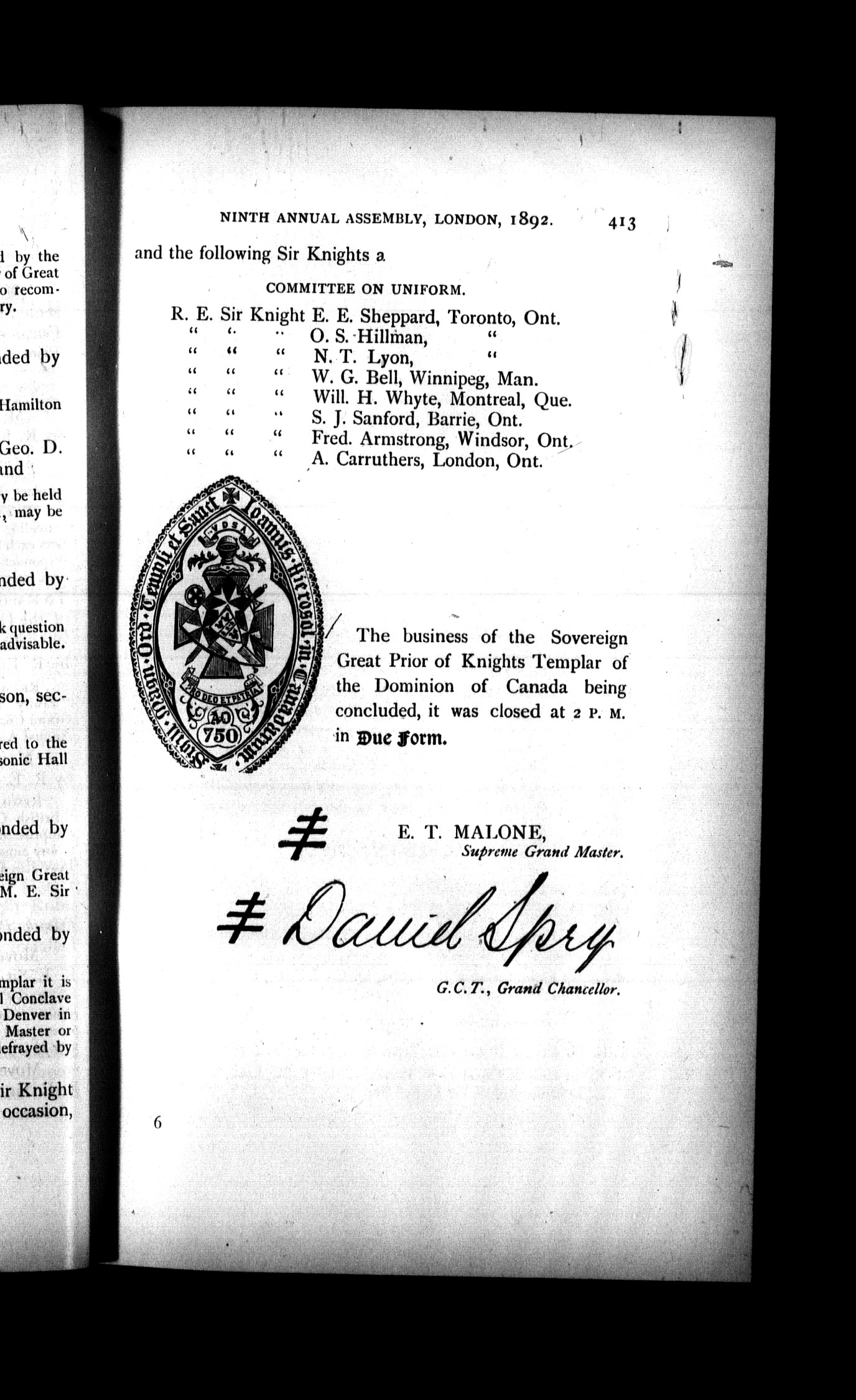 - Proceedings of the Sovereign Great Priory of Canada, Knights Templar, at the ninth annual assembly : Ninth (1892)