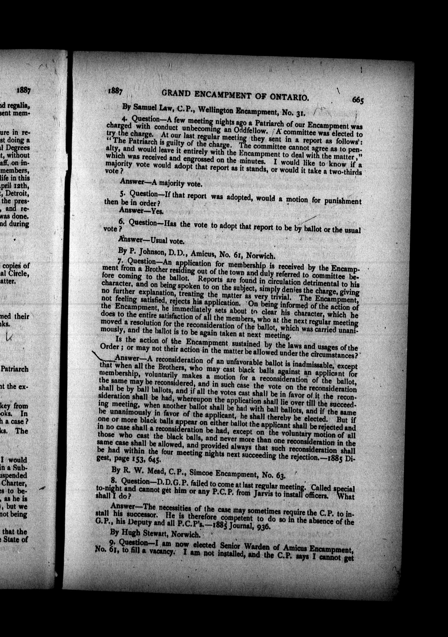 - Journal of proceedings of the eighteenth annual session of the Grand Encampment of the Province of Ontario, held in the court house, Peterborough, August 9th, 1887 : Eighteenth (1887)