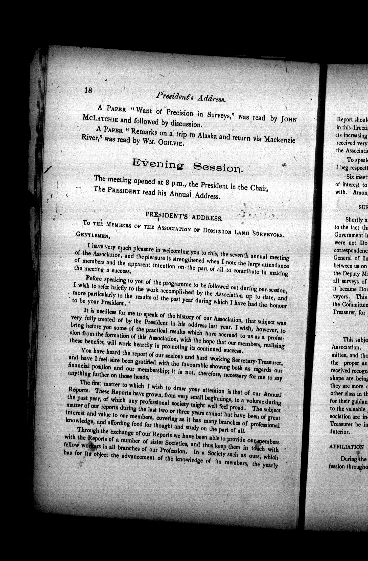 Report of proceedings of the Association of Dominion Land Surveyors at its ... annual meeting : Report of proceedings of the Association of Dominion Land Surveyors at its seventh annual meeting, held at Ottawa, February 18 and 19, 1890 : Seventh (1890)