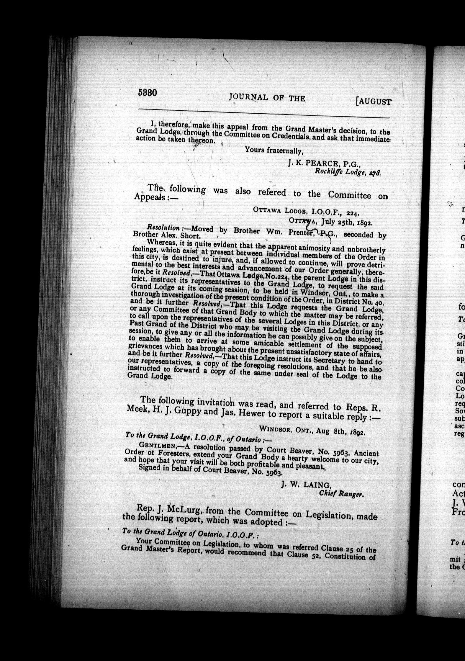 Proceedings of the R.W. Grand Lodge of the Province of Ontario, Canada : : Proceedings of the Grand Lodge of the Province of Ontario, Canada : thirty-eighth annual session held at Windsor, commencing August 10th, 1892 : Thirty-Eighth (1892)
