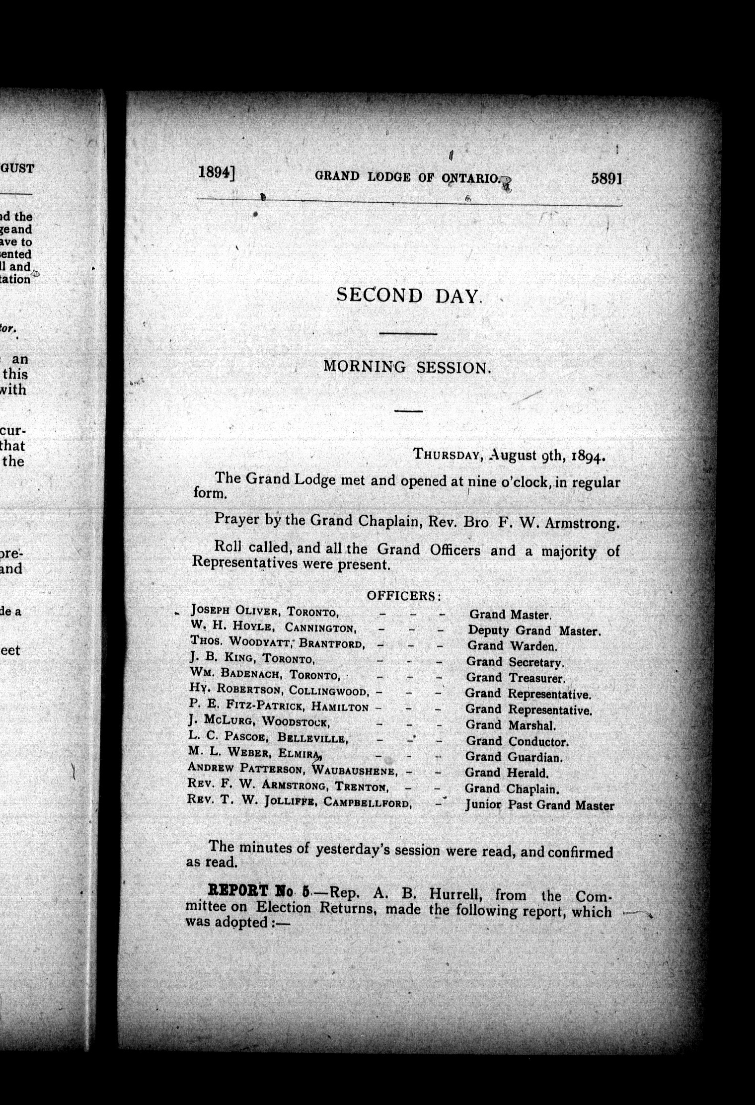 Proceedings of the R.W. Grand Lodge of the Province of Ontario, Canada : : Proceedings of the Grand Lodge of the Province of Ontario, Canada : fortieth annual session held at Kingston, August 8th, 9th, 10th, 1894 : Fortieth (1894)