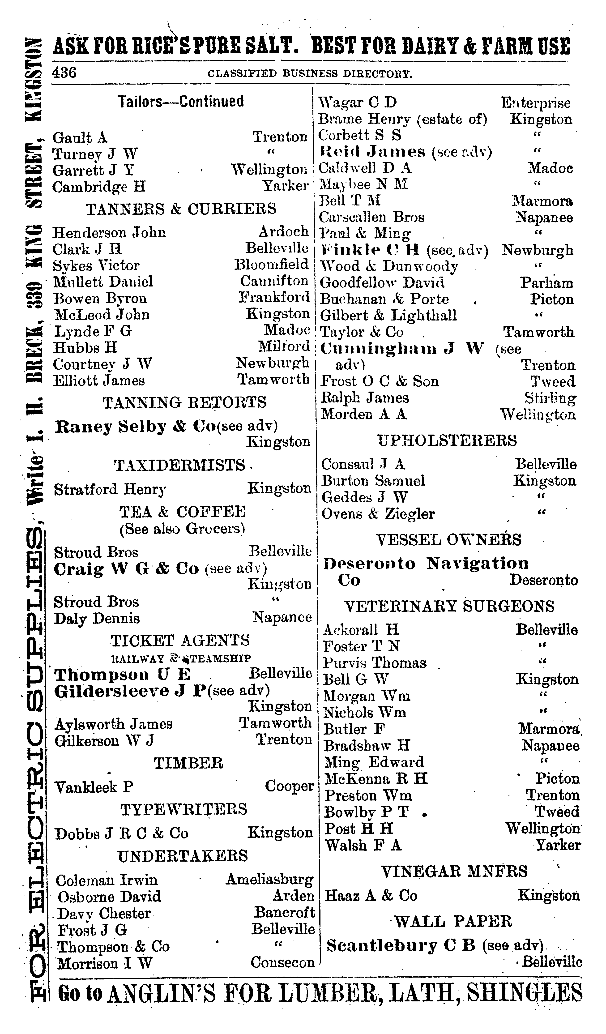 The Union Publishing Co's farmers' and business directory for the counties of Frontenac, Hastings, Lennox, Addington, Prince Edward for 1899 : Vol. X (1899)