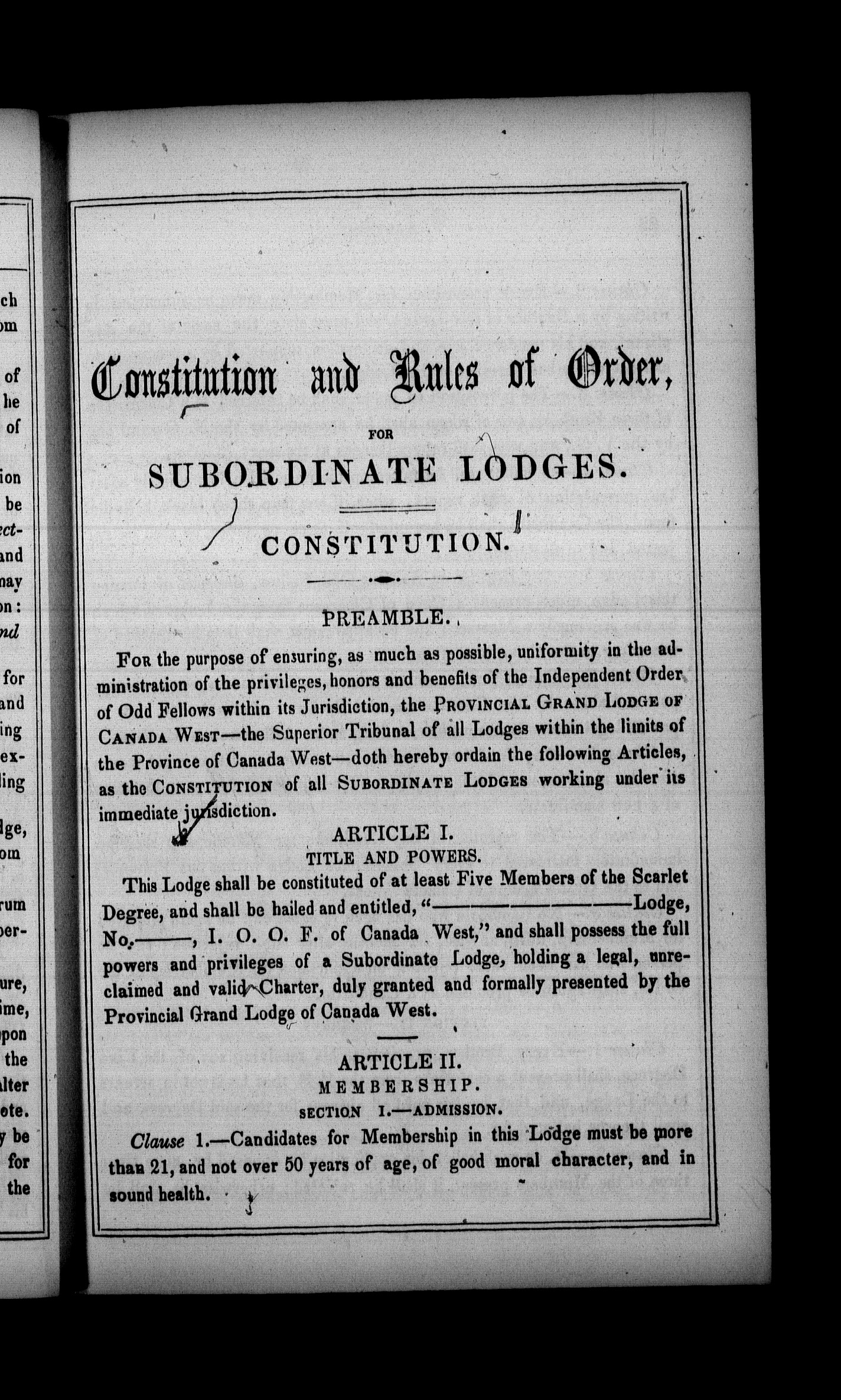 Journal of proceedings of the Grand Lodge of Canada West, I.O.O.F. : from its institution at Brockville, on the 23rd day of August, 1855, to the close of its second annual communication, held at the town of St. Catharines, on the 7th August, 1856 ... : 1855/1856