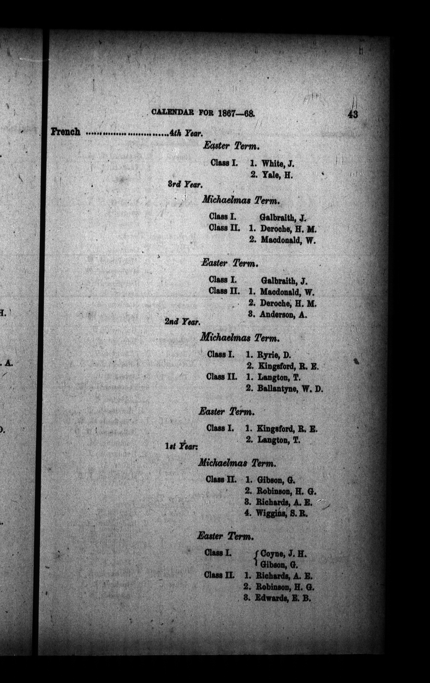 The calendar of University College, Toronto, for M.DCCC.LXVII - M.DCCC.LXVIII : 1867/1868