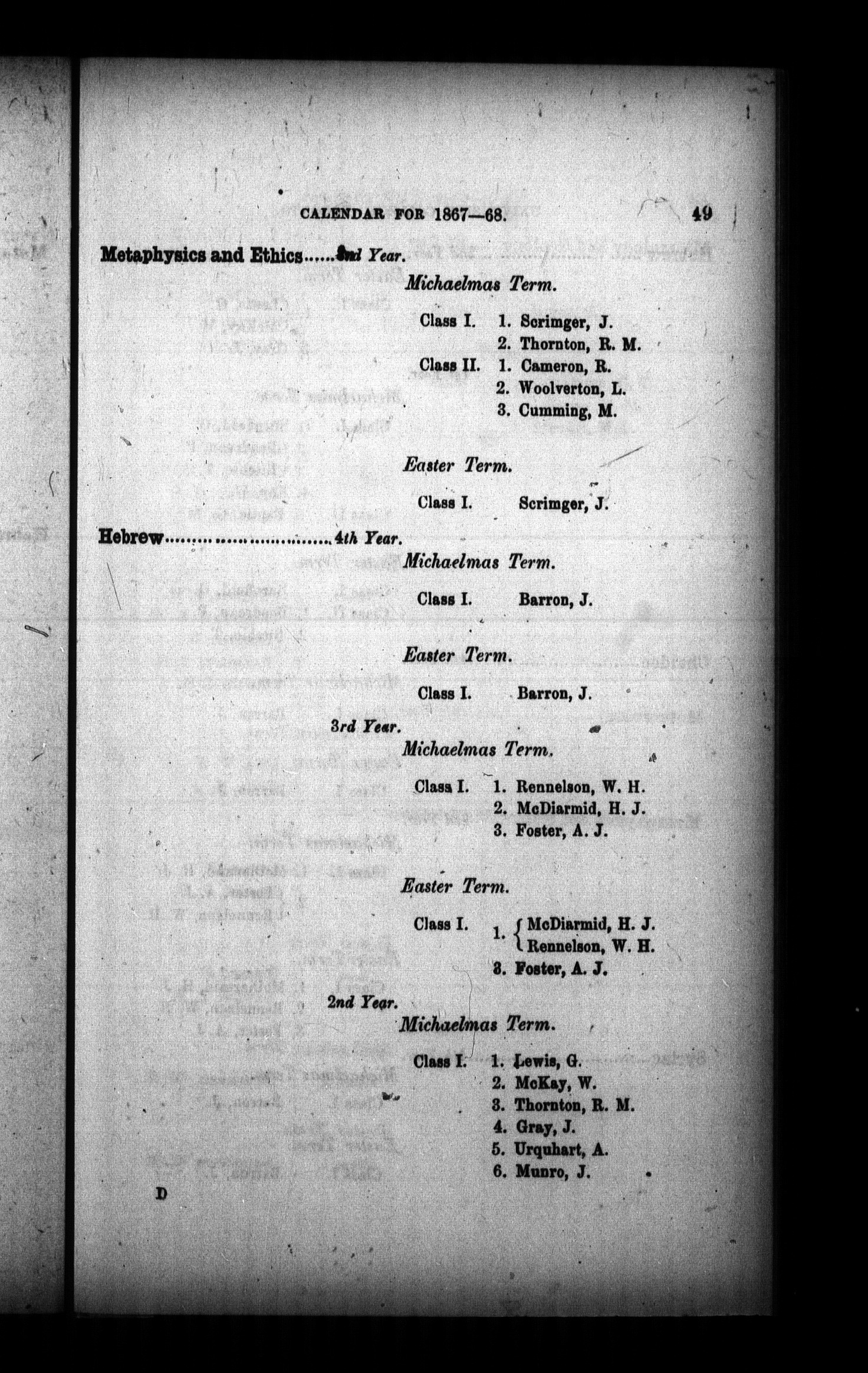 The calendar of University College, Toronto, for M.DCCC.LXVII - M.DCCC.LXVIII : 1867/1868