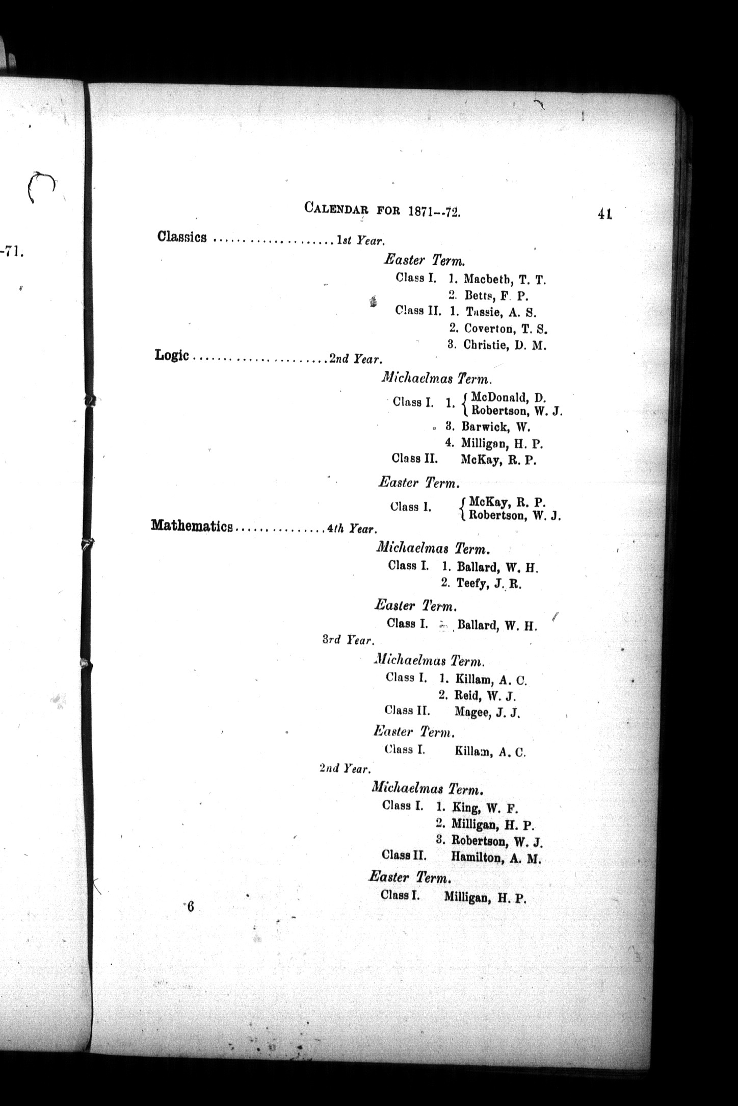 - The calendar of University College, Toronto, for M.DCCC.LXXI - M.DCCC.LXXII : 1871/1872