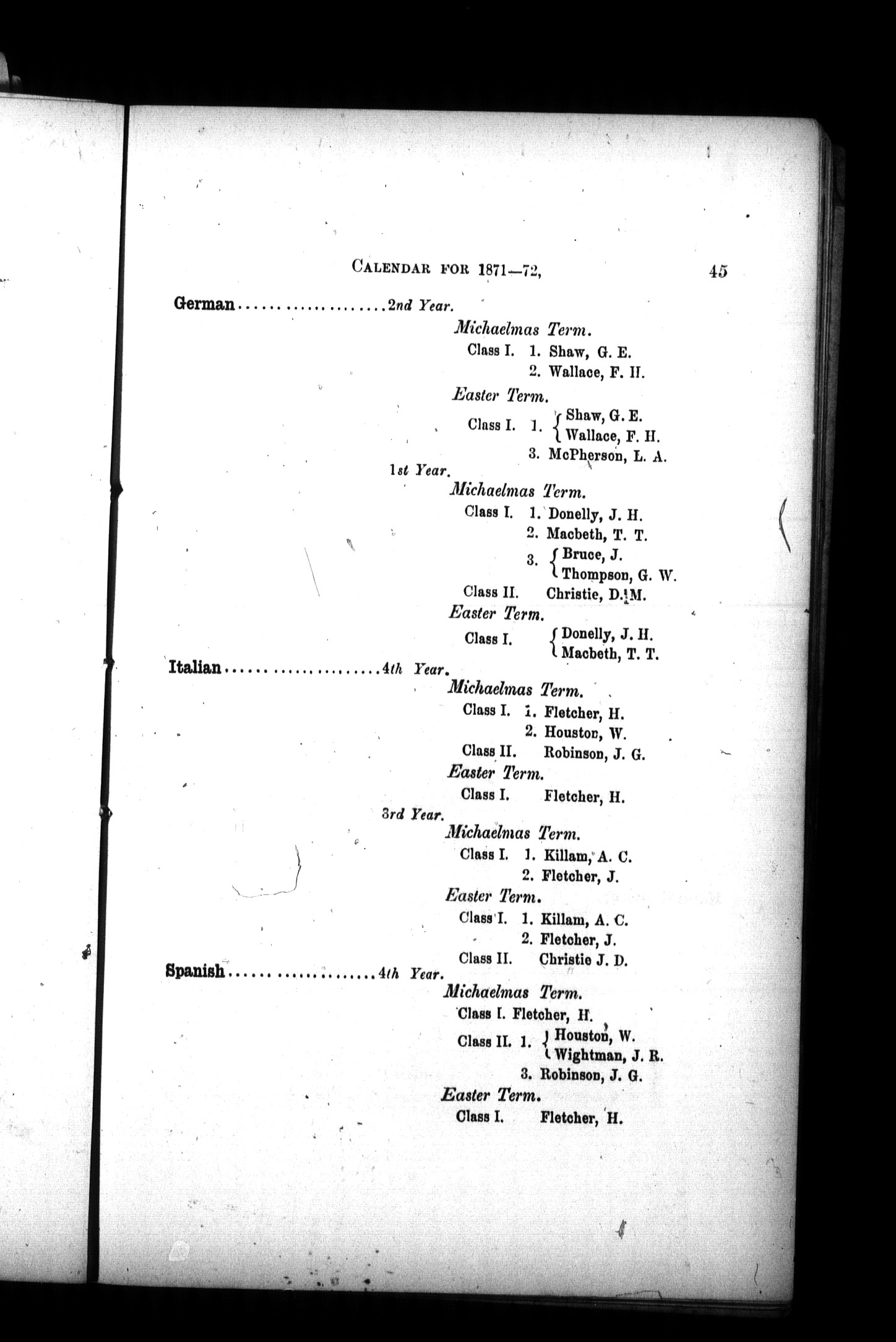 - The calendar of University College, Toronto, for M.DCCC.LXXI - M.DCCC.LXXII : 1871/1872