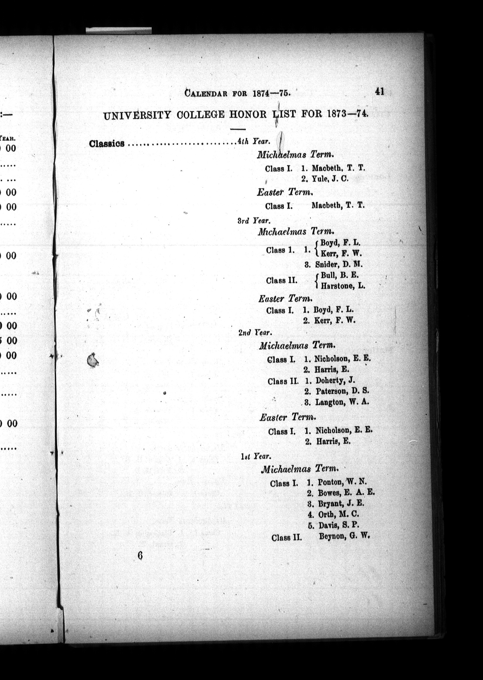 The calendar of University College, Toronto, for M.DCCCLXXIV - M.DCCCLXXV : 1874/1875