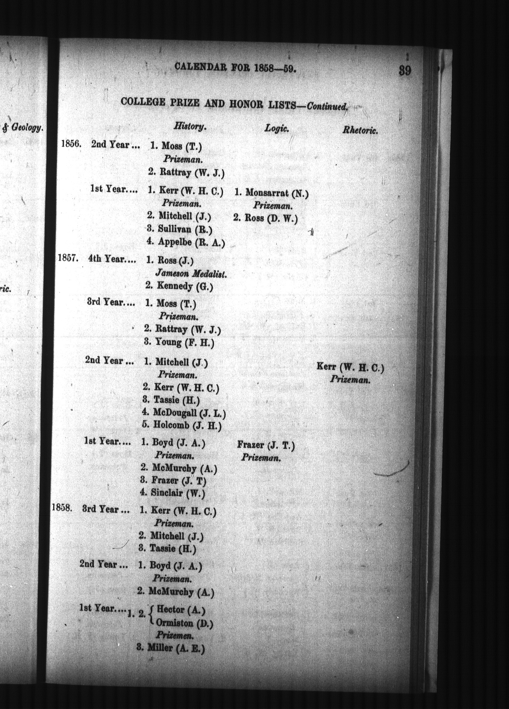 - The calendar of University College, Toronto, for M.DCCC.LVIII - M.DCCC.LIX : 1858/1859