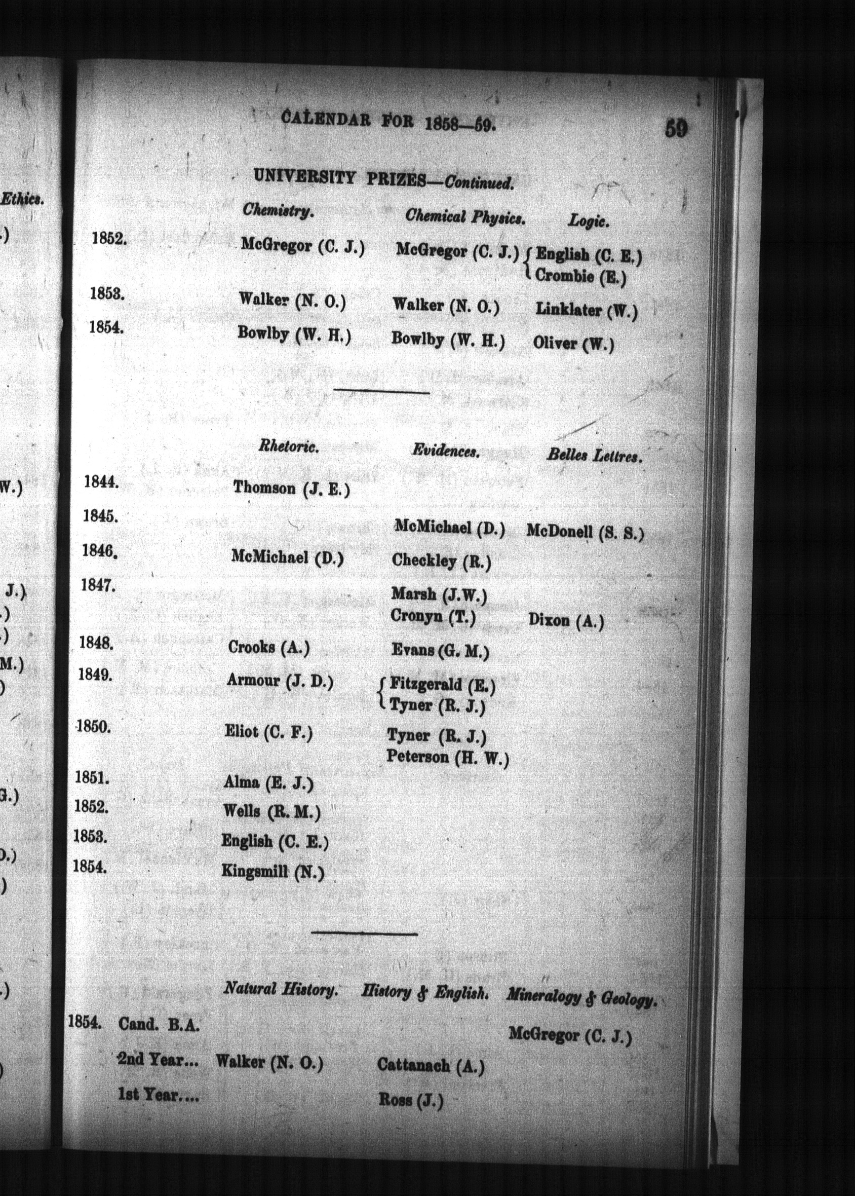 - The calendar of University College, Toronto, for M.DCCC.LVIII - M.DCCC.LIX : 1858/1859