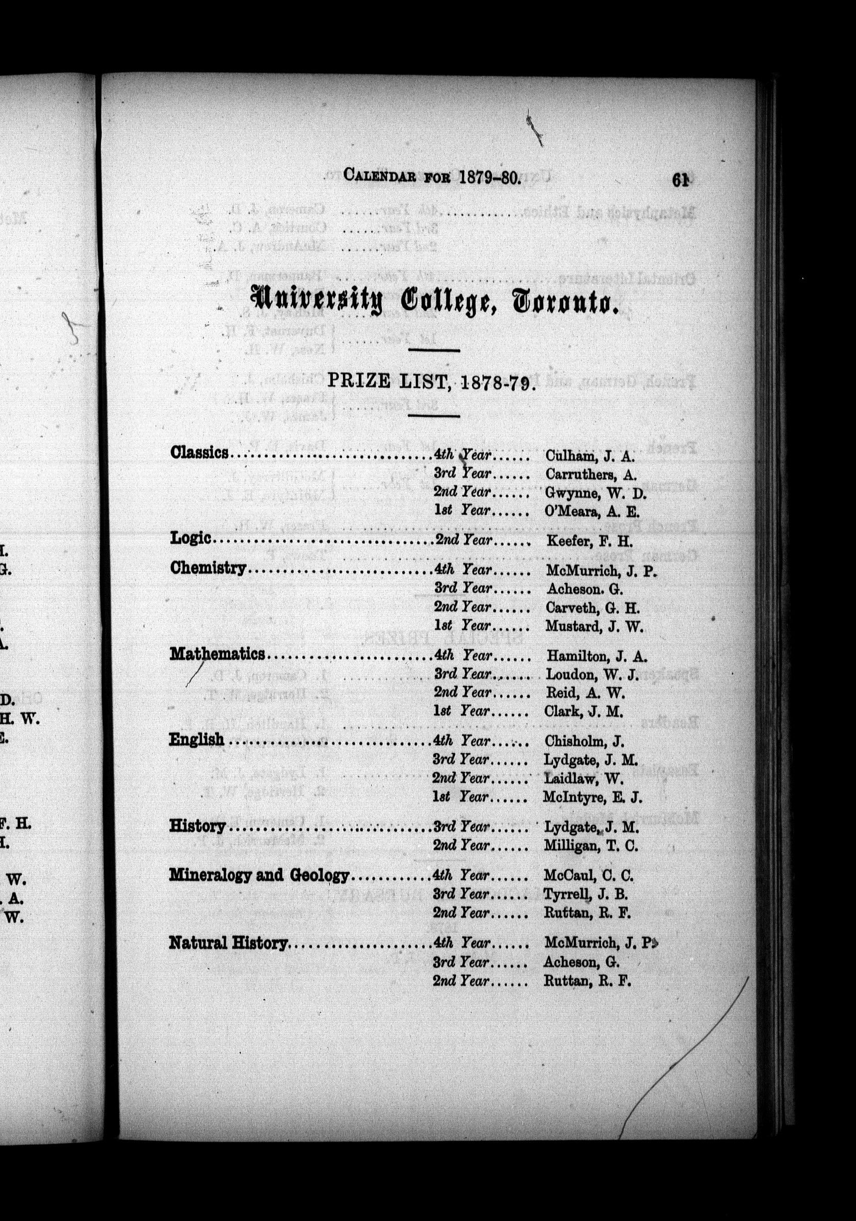 The calendar of University College, Toronto, for M.DCCCLXXIX - M.DCCCLXXX : 1879/1880