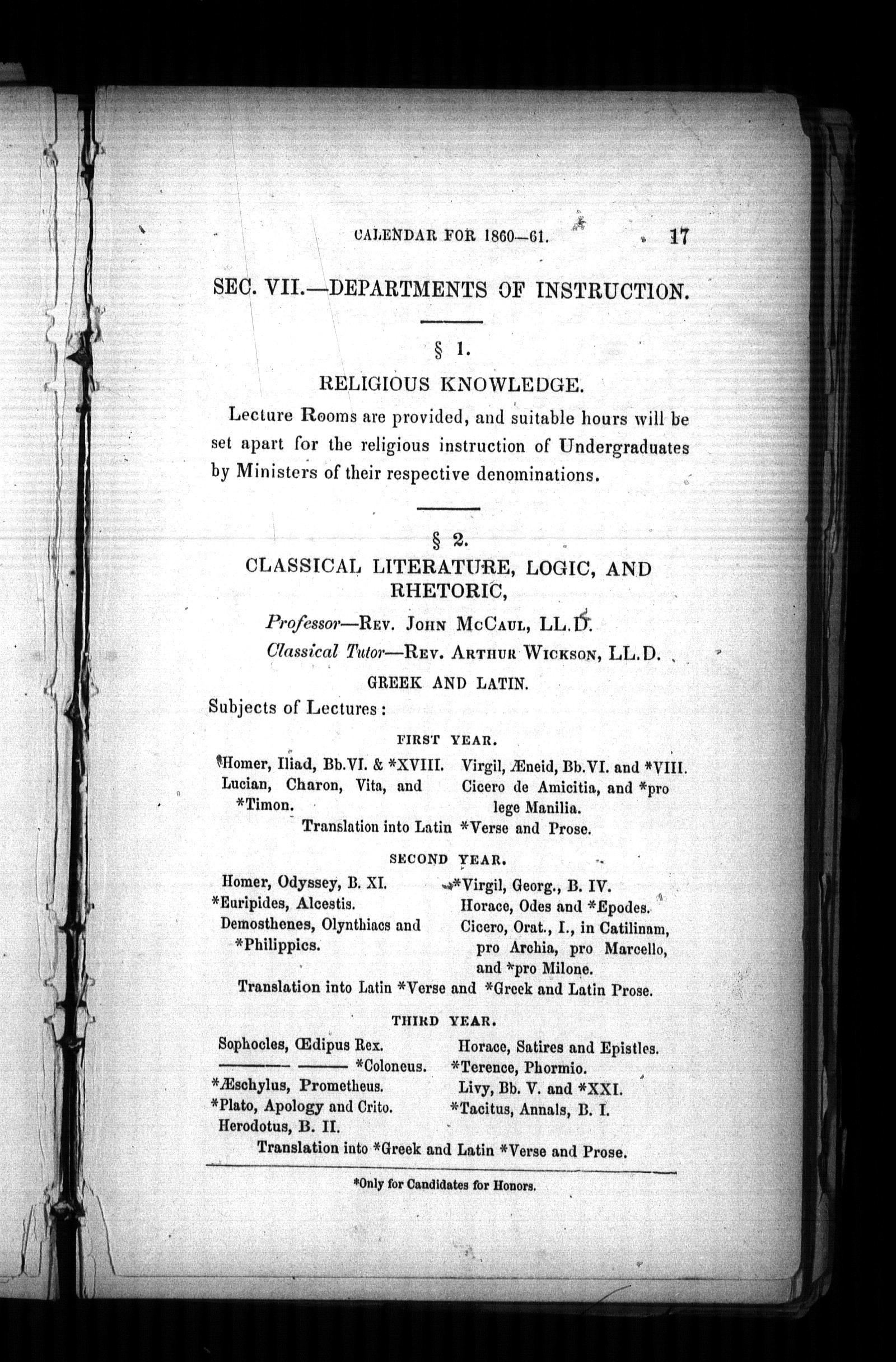 The calendar of University College, Toronto, for ... : The calendar of University College, Toronto, for M.DCCC.LX - M.DCCC.LXI : 1860/1861