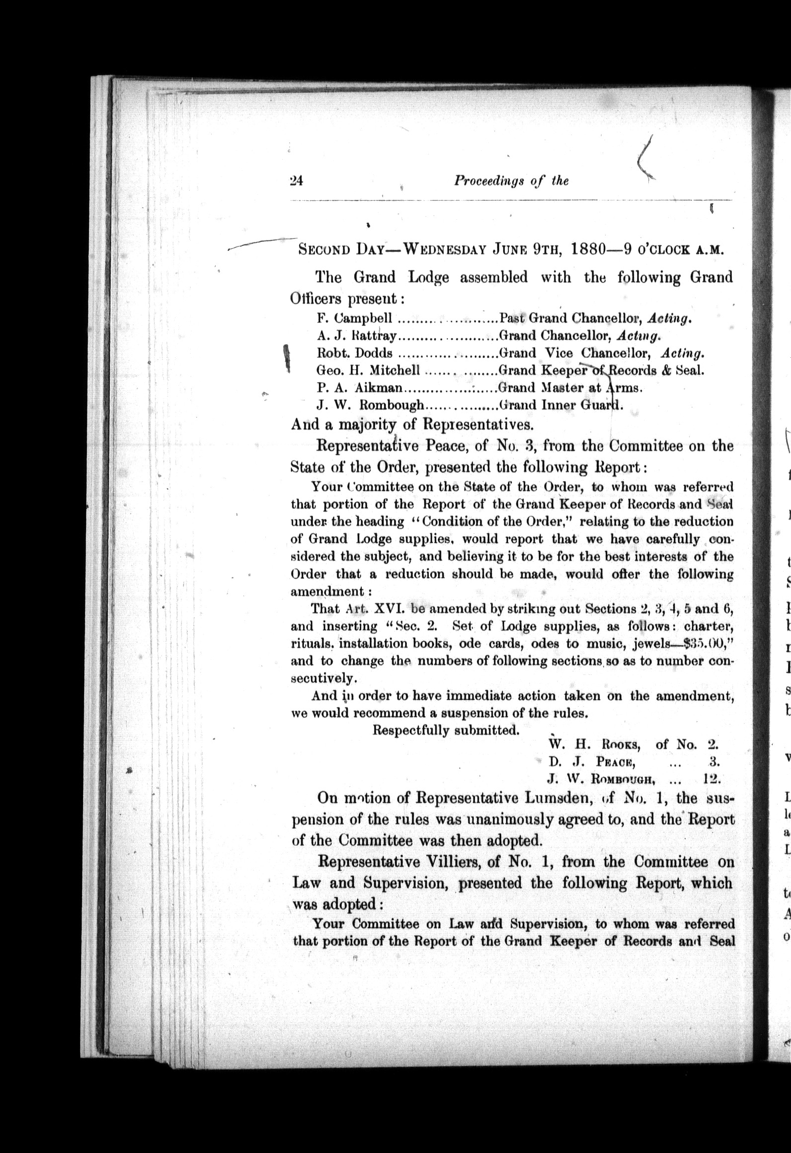 Proceedings of the Grand Lodge of Ontario : : Proceedings of the Grand Lodge of Ontario : ninth annual convention, held at London, June 8th and 9th, A.D. 1880, Pythian Period XVII : Ninth (1880)