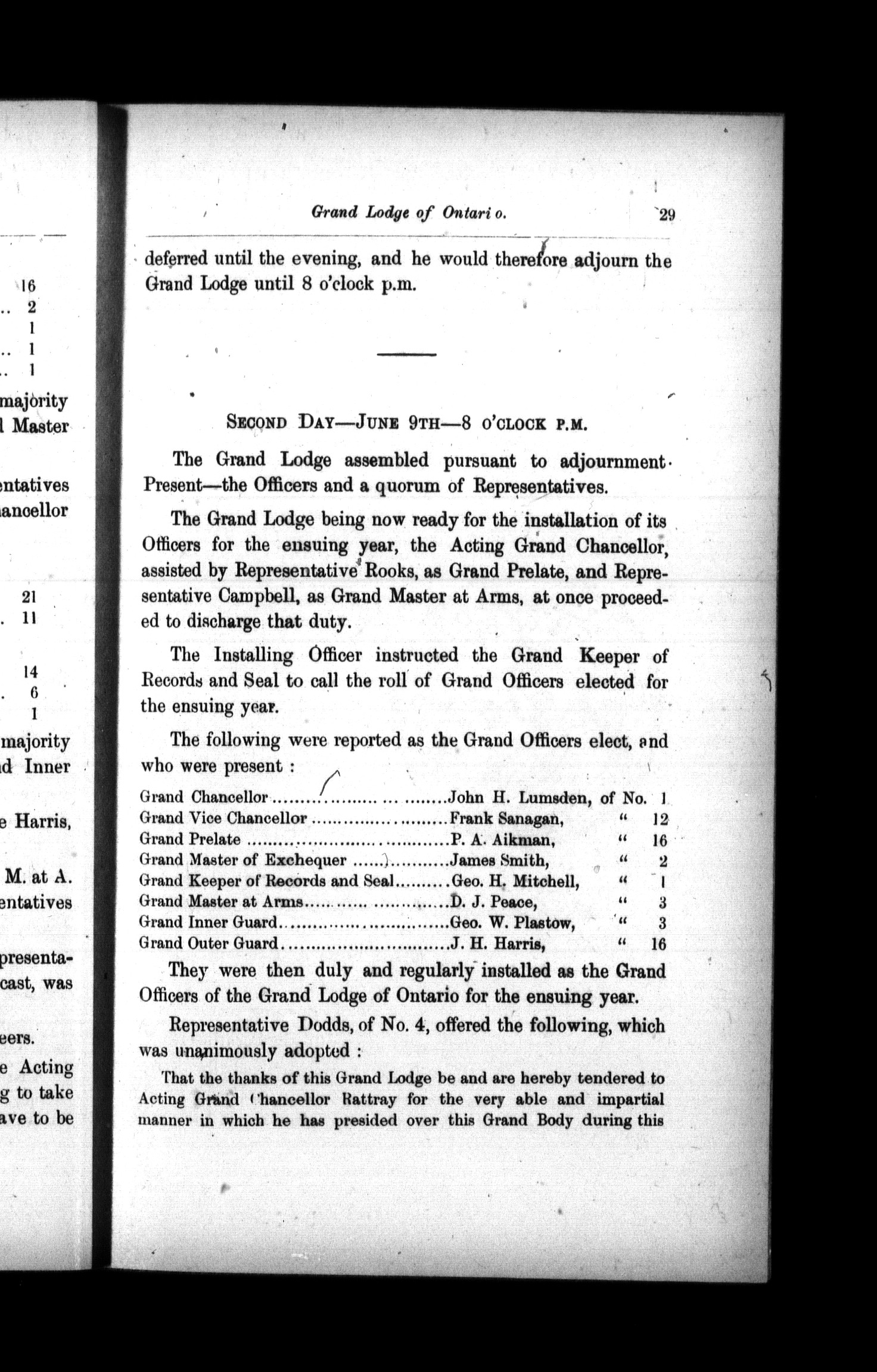 Proceedings of the Grand Lodge of Ontario : ninth annual convention, held at London, June 8th and 9th, A.D. 1880, Pythian Period XVII : Ninth (1880)