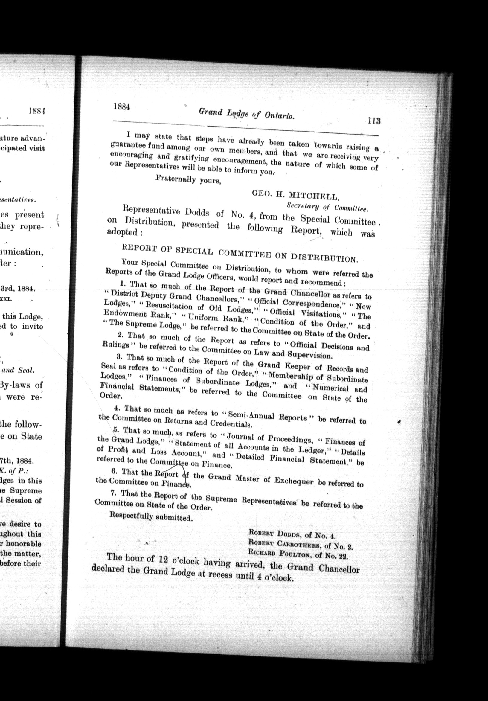 Proceedings of the Grand Lodge of Ontario : : Proceedings of the Grand Lodge of Ontario : thirteenth annual convention, held at Windsor, June 10th, 11th and 12th, 1884, Pythian Period XXI : Thirteenth (1884)