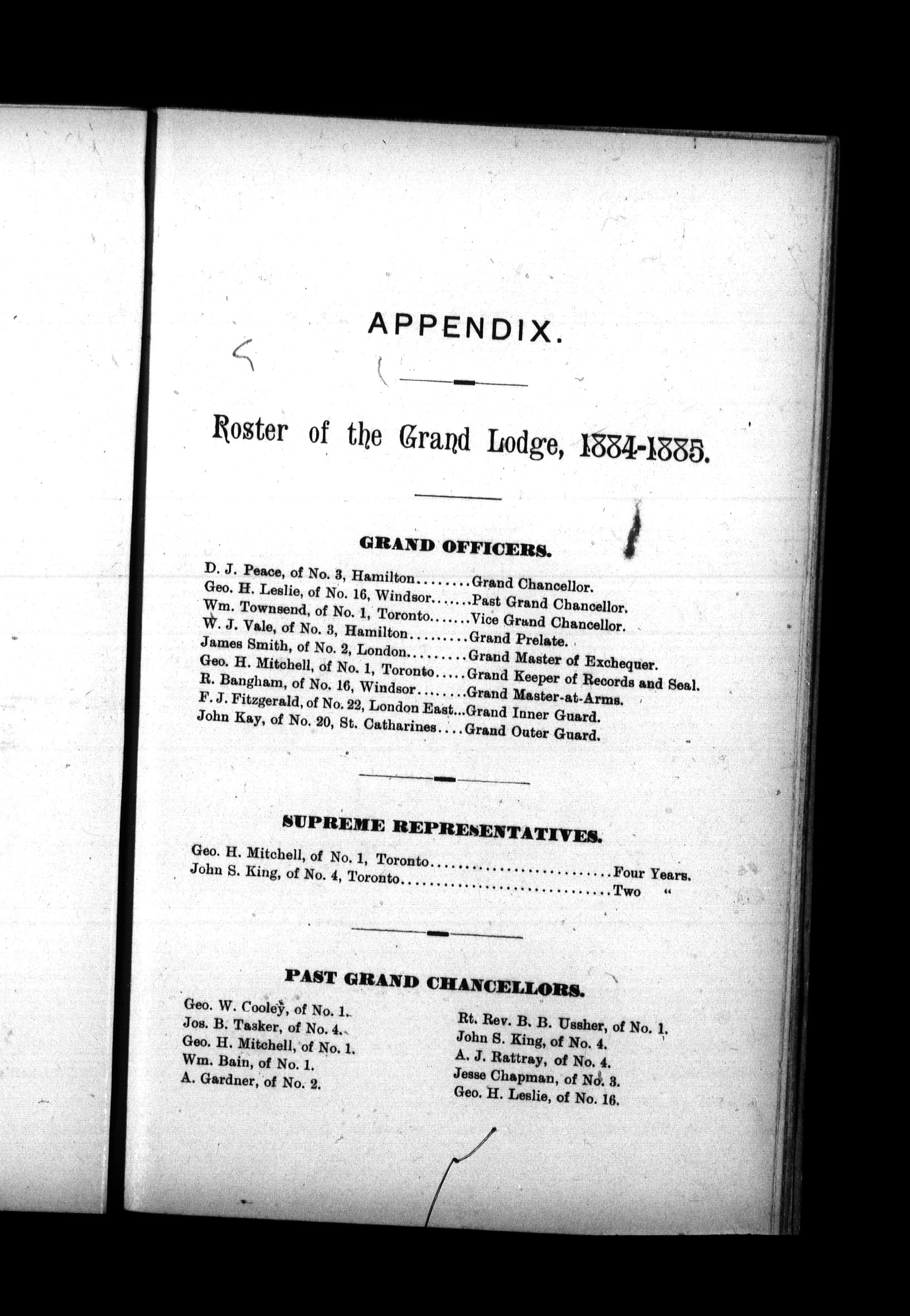 Proceedings of the Grand Lodge of Ontario : : Proceedings of the Grand Lodge of Ontario : thirteenth annual convention, held at Windsor, June 10th, 11th and 12th, 1884, Pythian Period XXI : Thirteenth (1884)