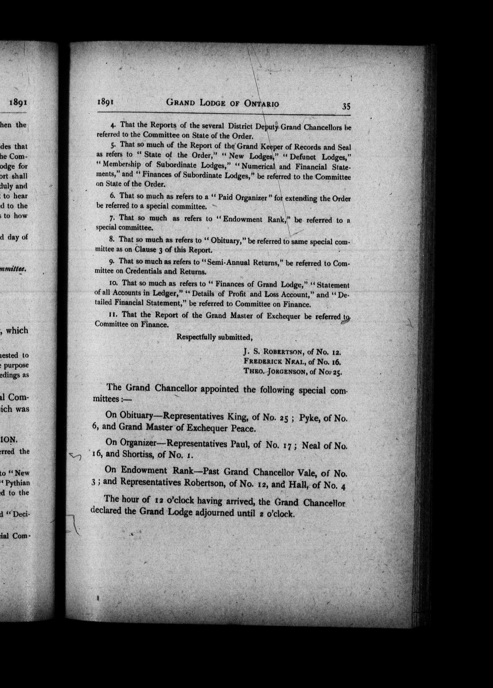 Proceedings of the Grand Lodge of Ontario : : Proceedings of the Grand Lodge of Ontario : twentieth annual convention, held in London, June 9-10, 1891, Pythian Period XXVIII : Twentieth (1891)