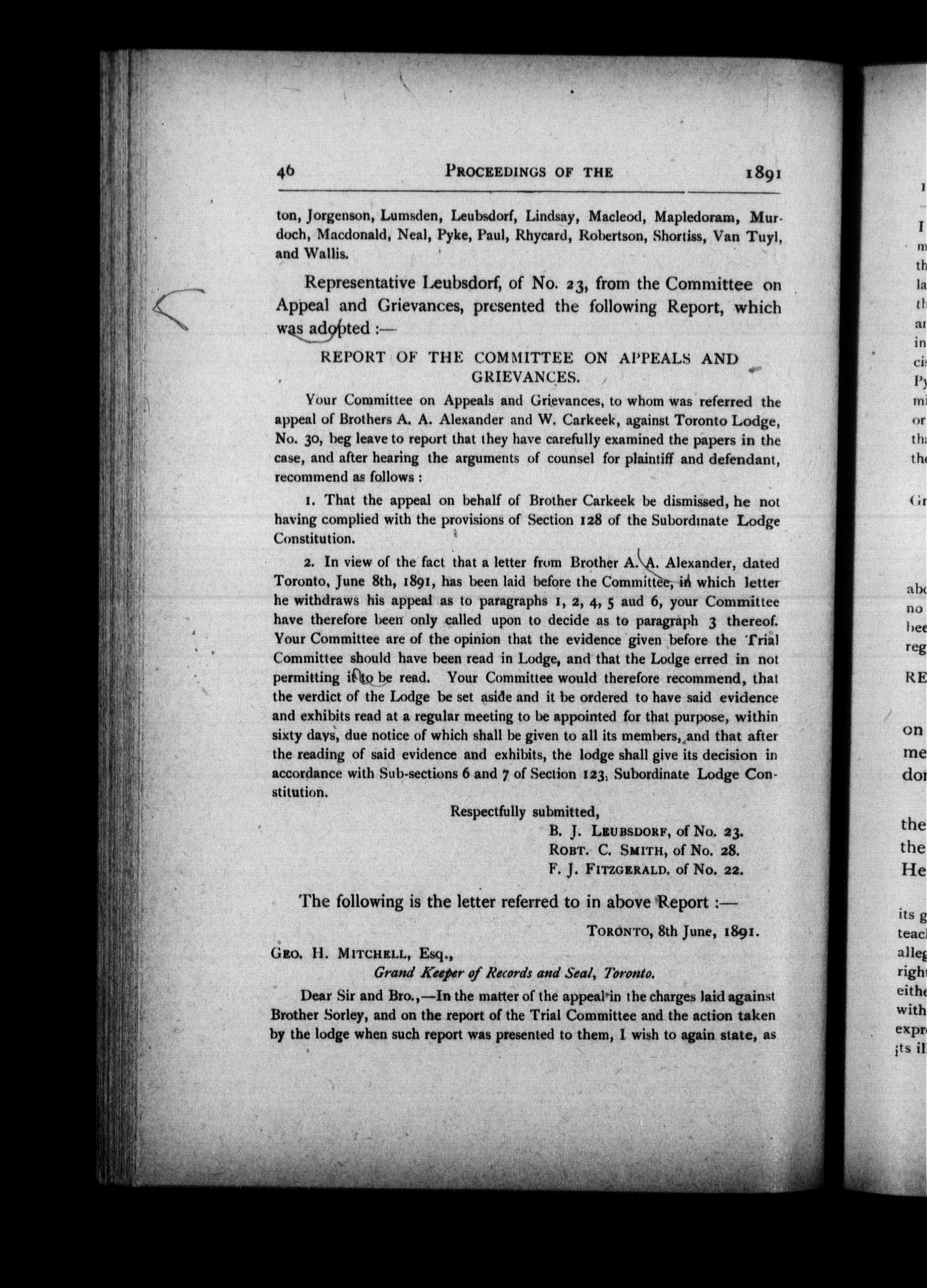 [Toronto?] : [Grand Lodge of Ontario], 1891