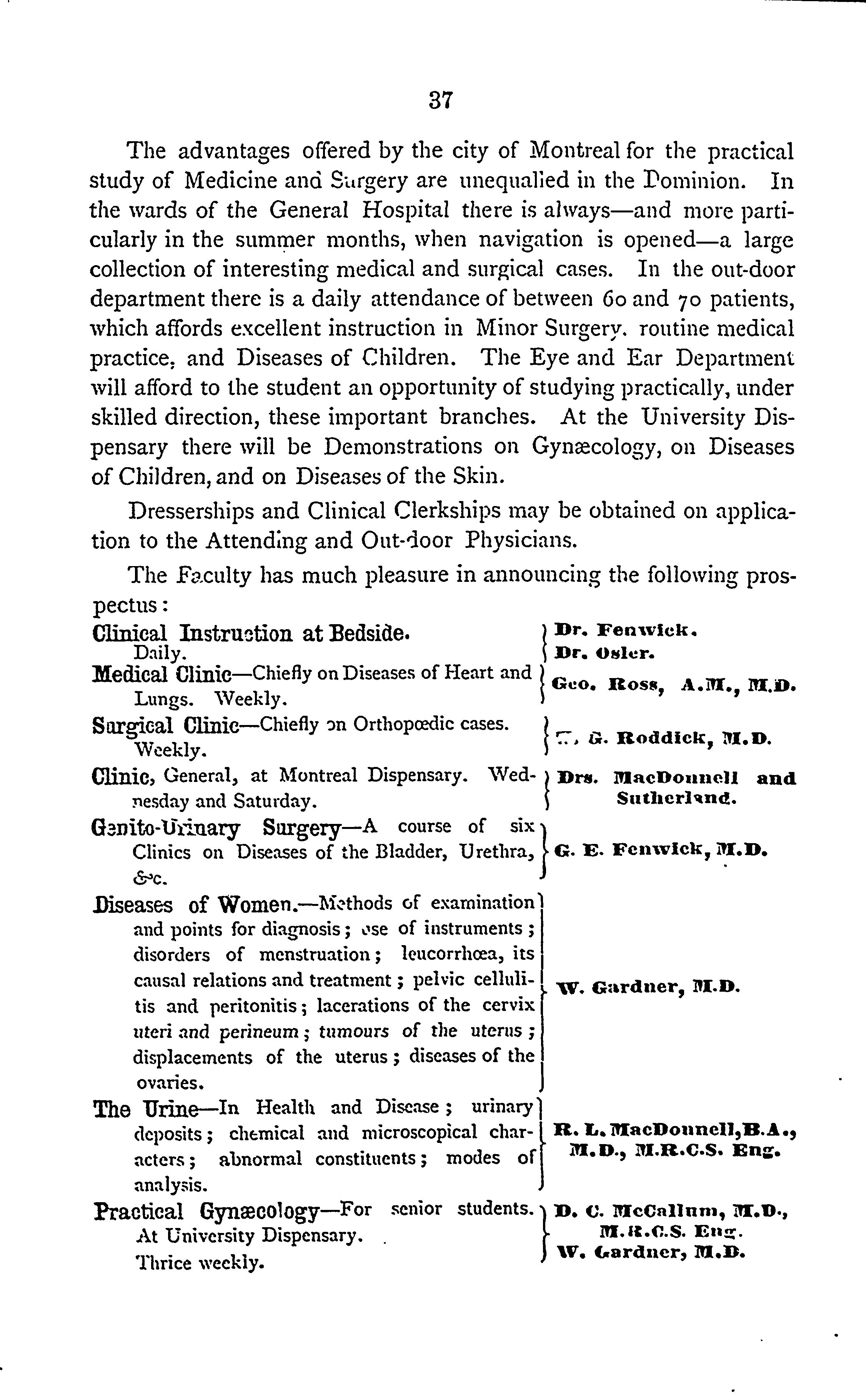 Annual announcement of the Faculty of Medicine of the M'Gill University, Montreal, for the ... session : 51st Annual announcement of the Faculty of Medicine / McGill University, Montreal : 51st (1883/84)