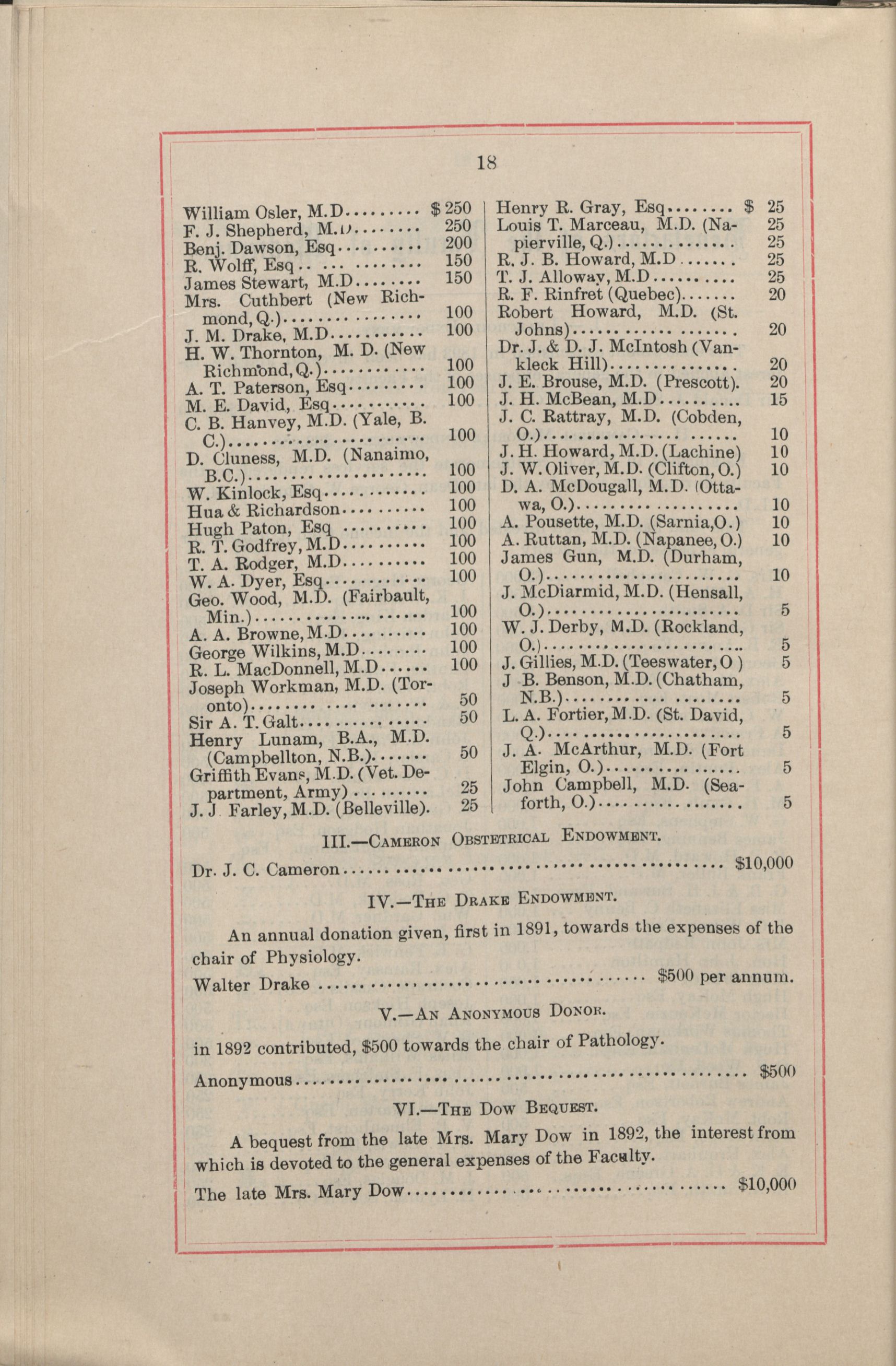 - Calendar of the Faculty of Medicine, McGill University : Sixty-Second session (1894/1895)