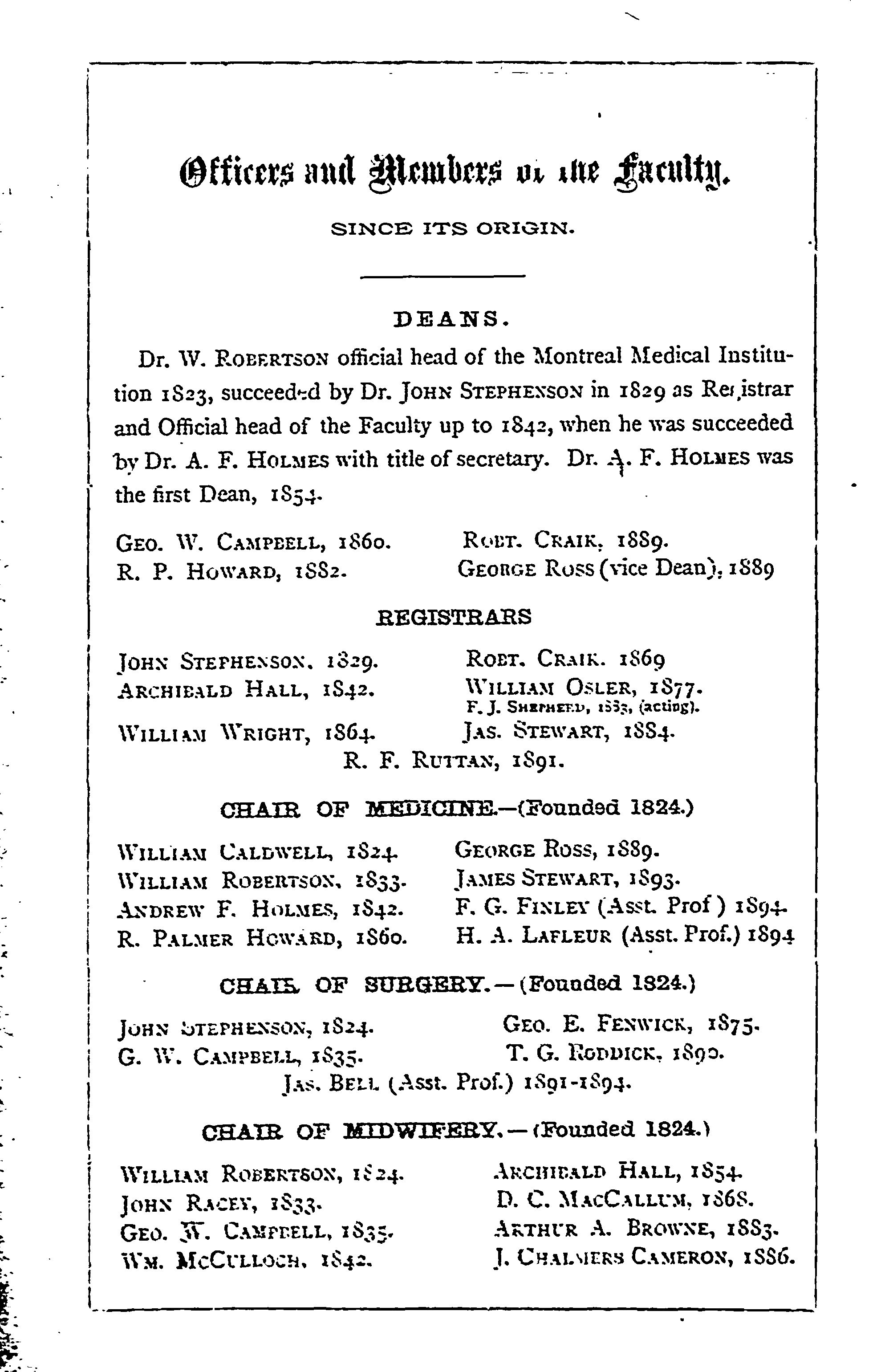 Calendar of the Faculty of Medicine, McGill University : Calendar of the Faculty of Medicine, McGill University : Sixty-Third session (1895/1896)
