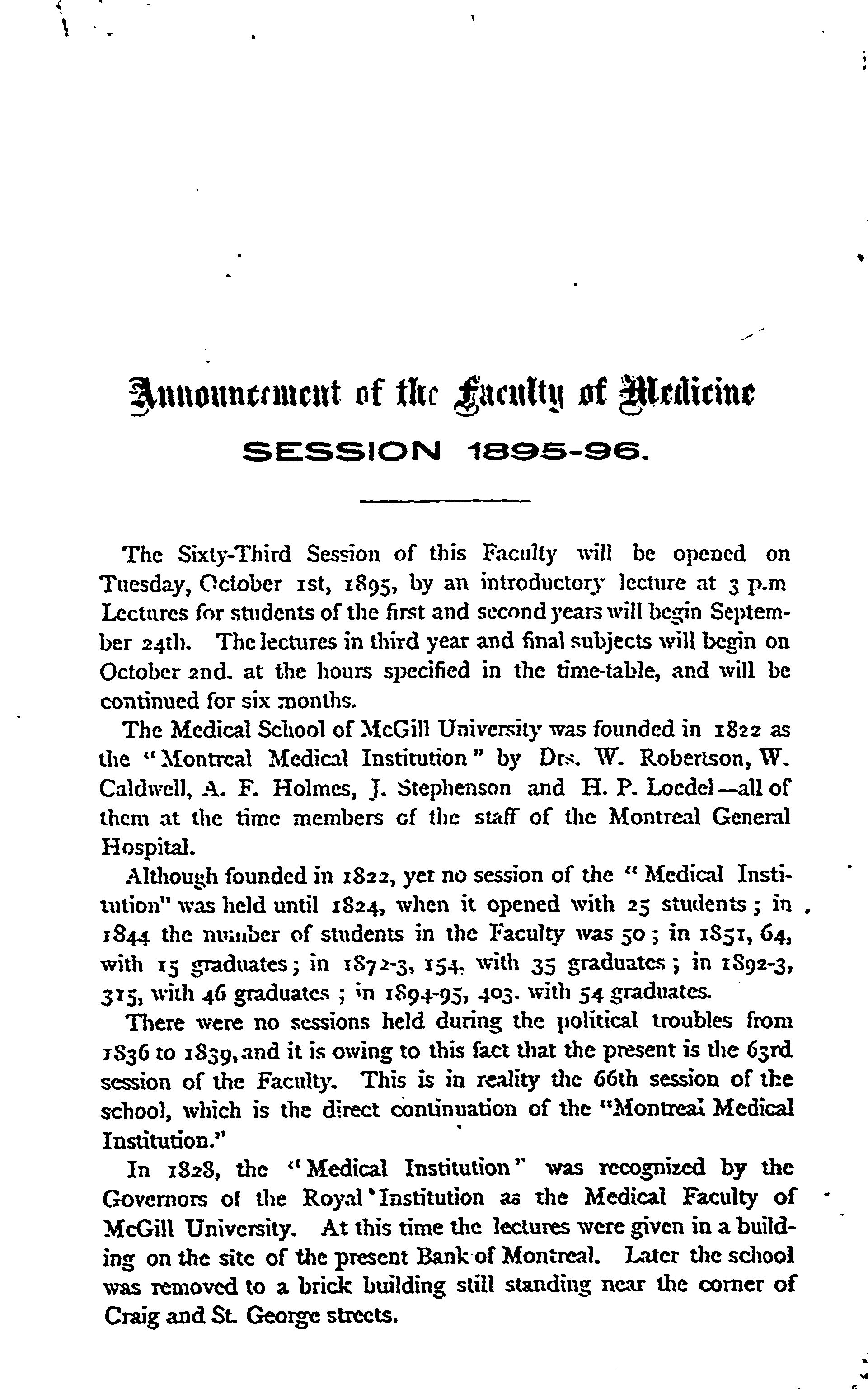Calendar of the Faculty of Medicine, McGill University : Sixty-Third session (1895/1896)