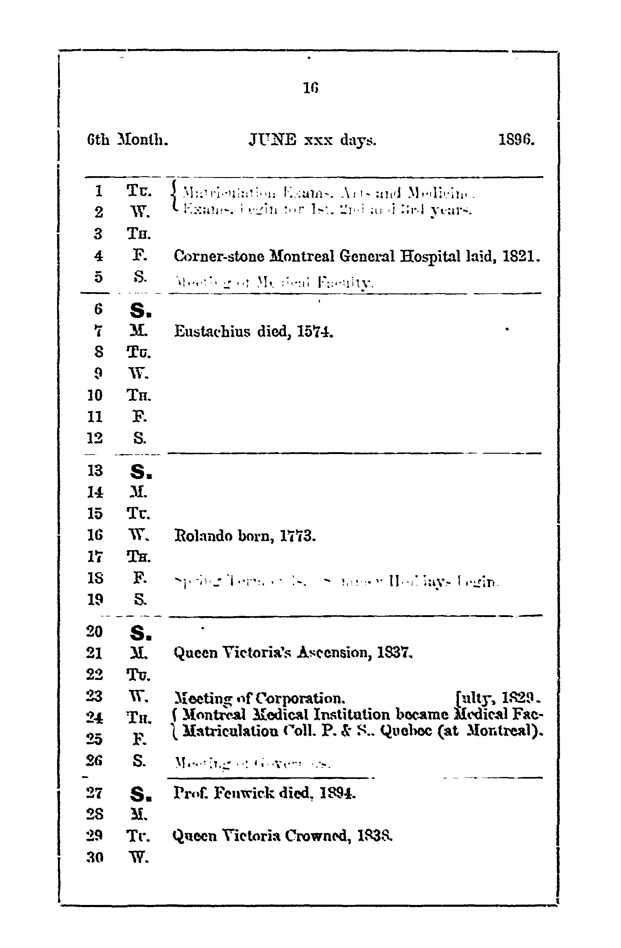 - Calendar of the Faculty of Medicine, McGill University : Sixty-Fourth session (1896/1897)