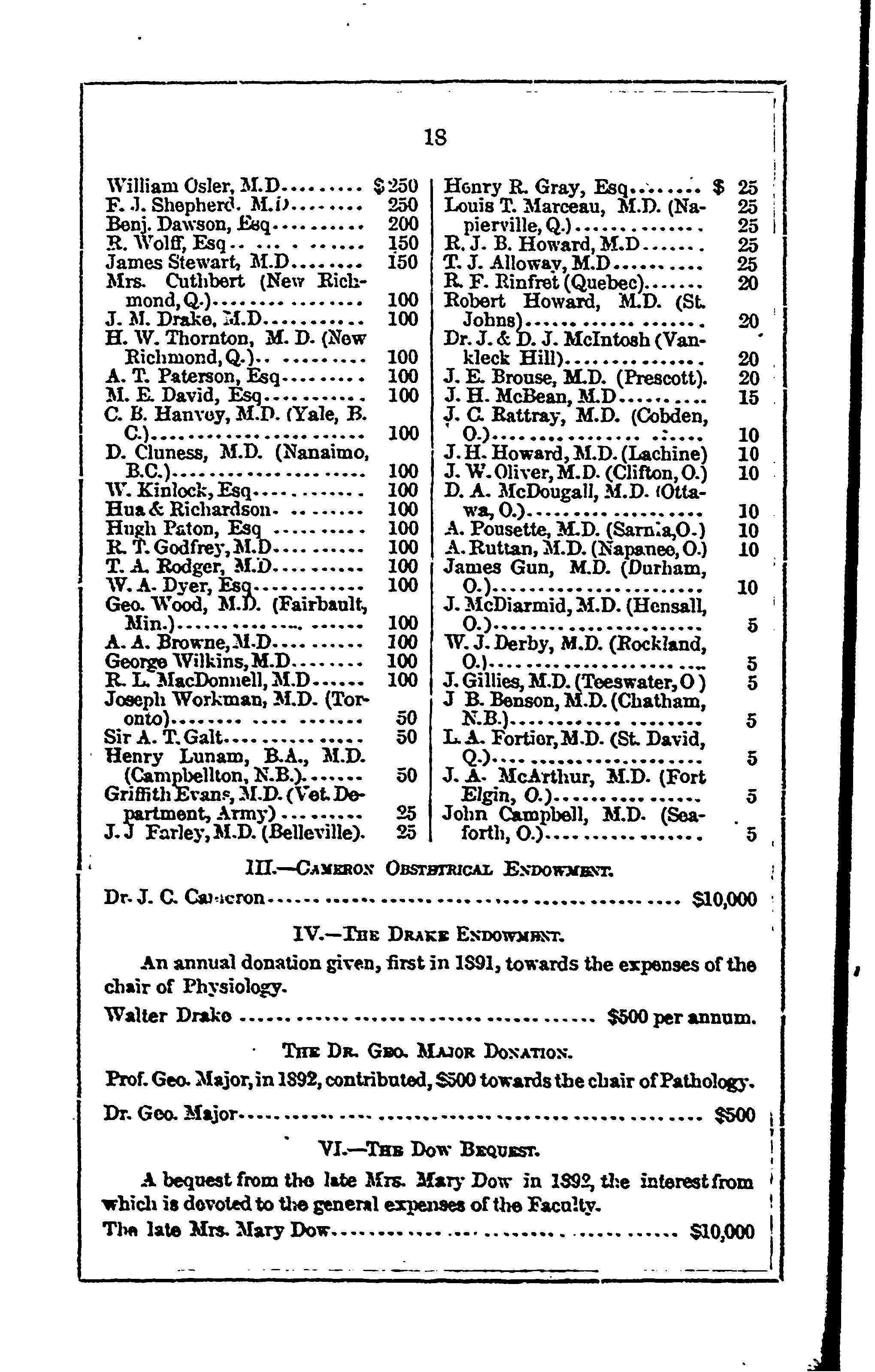 - Calendar of the Faculty of Medicine, McGill University : Sixty-Fourth session (1896/1897)