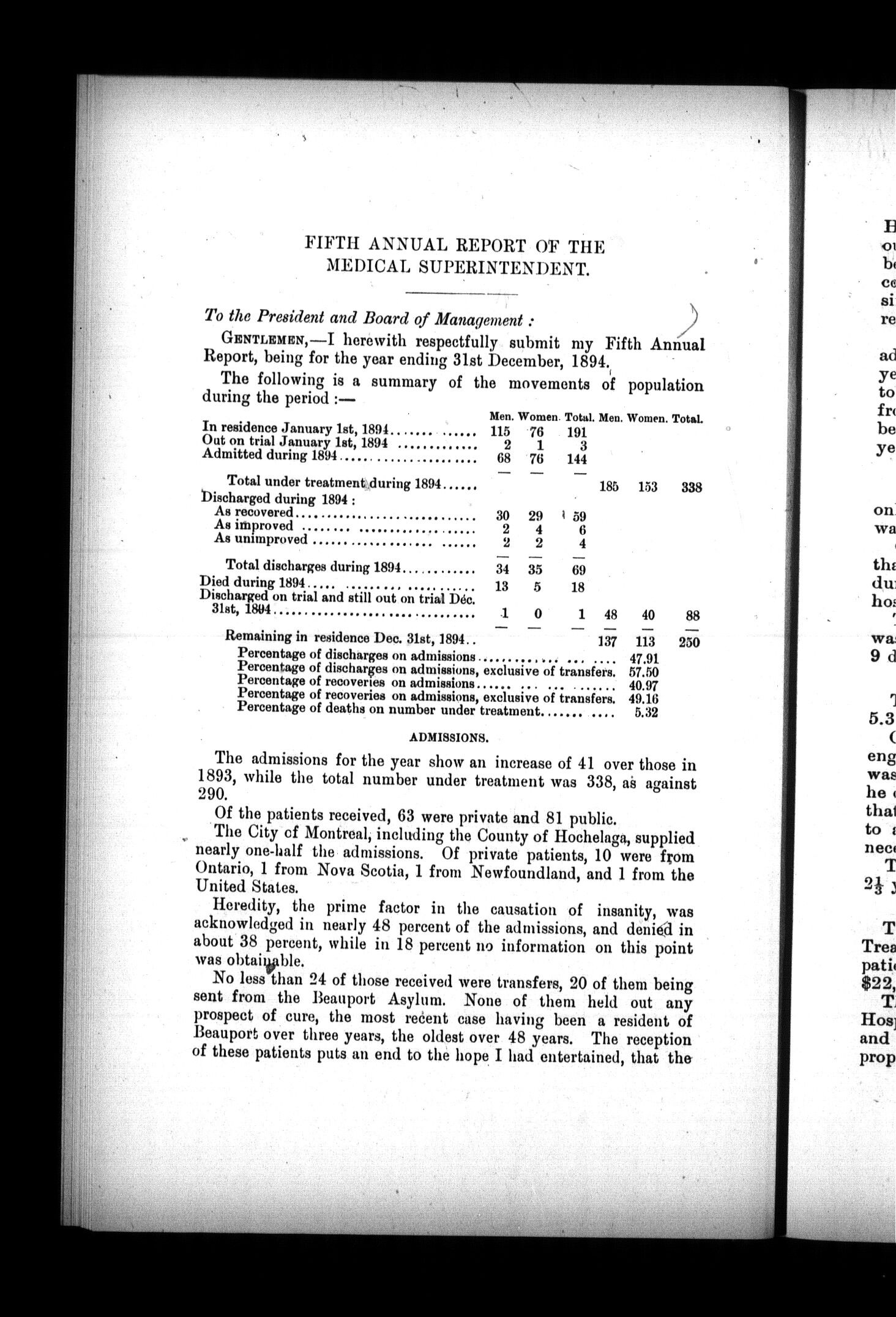 - Annual report for the year 1894 / Protestant Hospital for the Insane, Verdun, Montreal, Que : Eighth (1894)