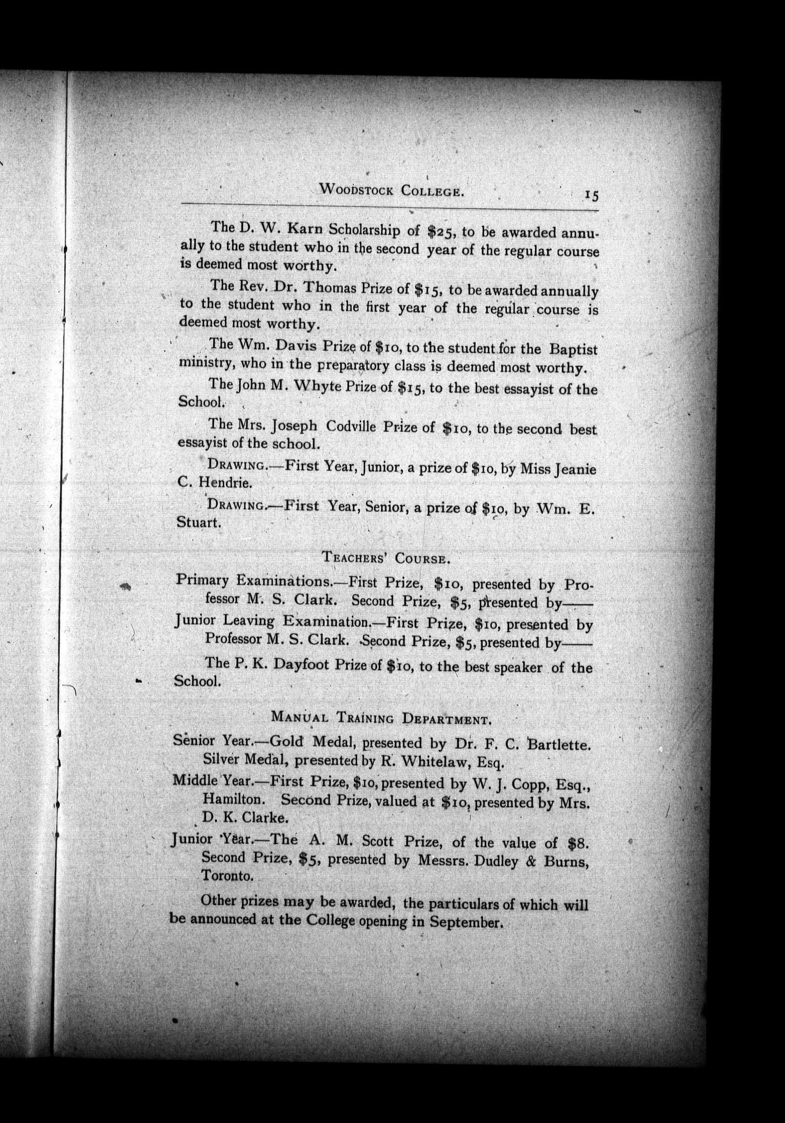 - [Woodstock, Ont.] : [Woodstock College], 1896