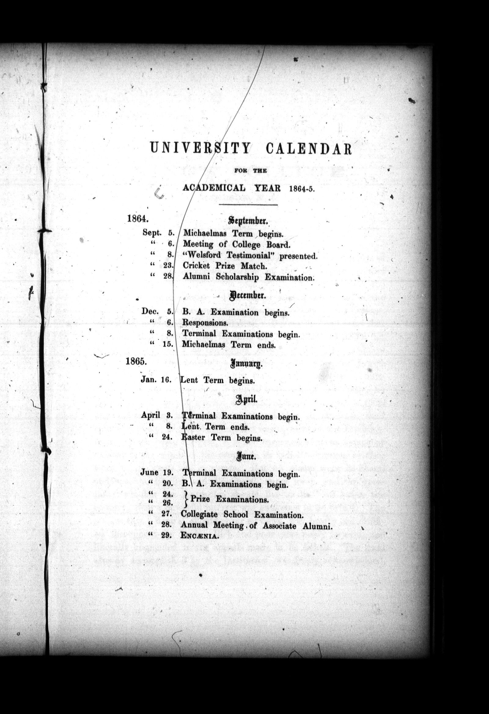 - The calendar of King's College, Windsor, Nova Scotia, for the year of our Lord 1864 : 1864