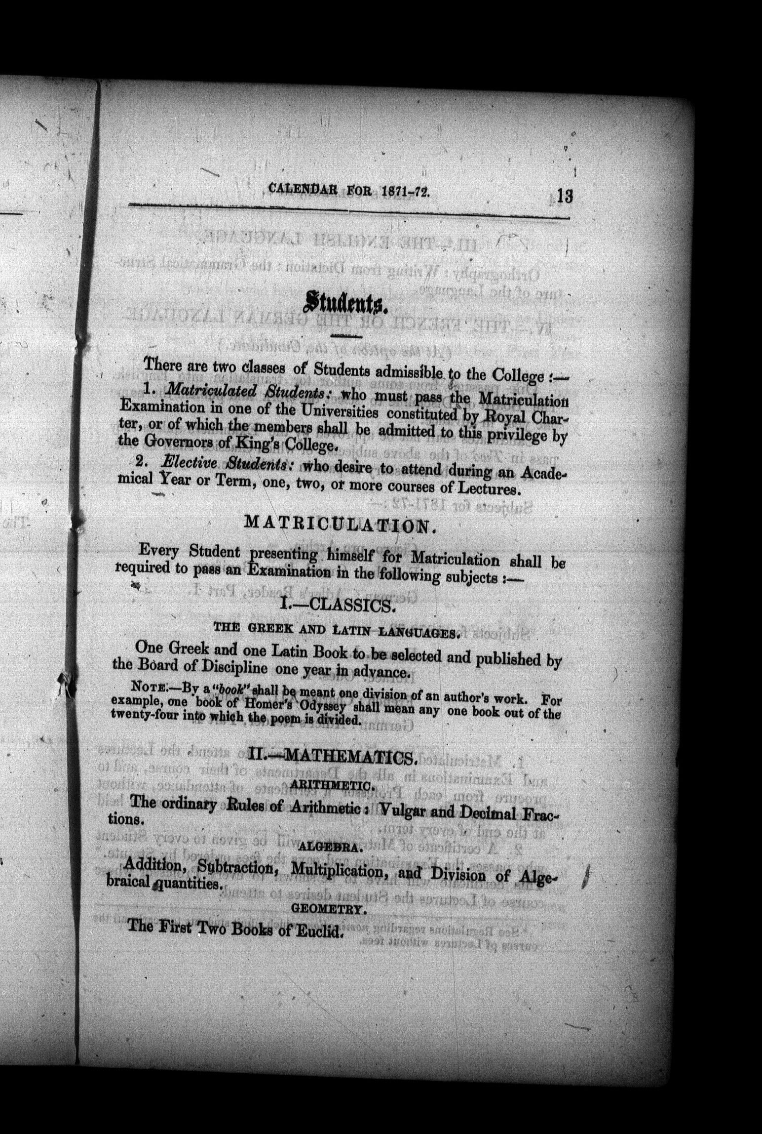 The calendar of King's College, Windsor, Nova Scotia for the year of our Lord ... : The calendar of King's College, Windsor, Nova Scotia, for 1871-72 : 1871/72