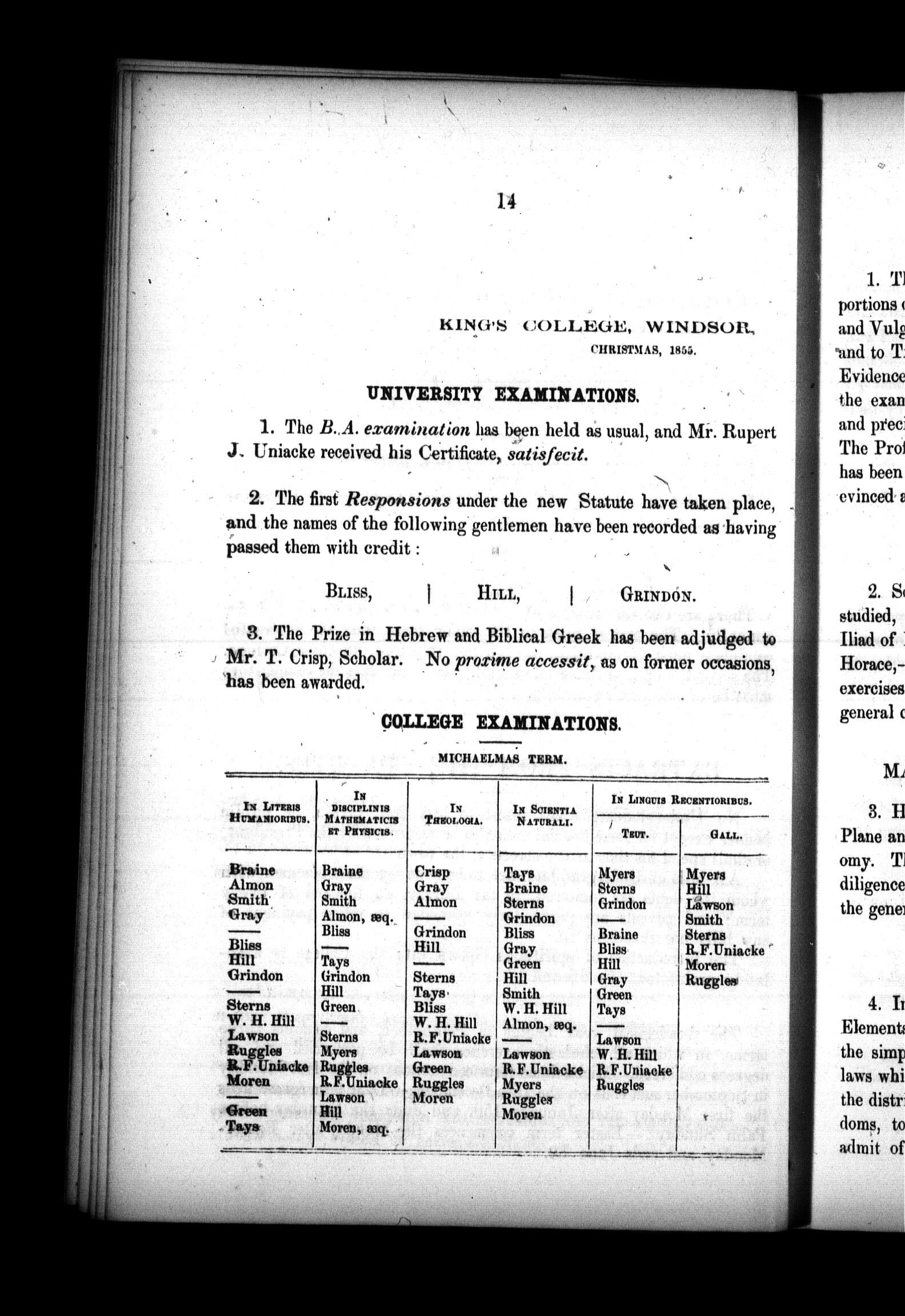 The calendar of King's College, Windsor, Nova Scotia for the year of our Lord ... : The calendar of King's College, Windsor, Nova Scotia, for the year of our Lord 1856 : 1856
