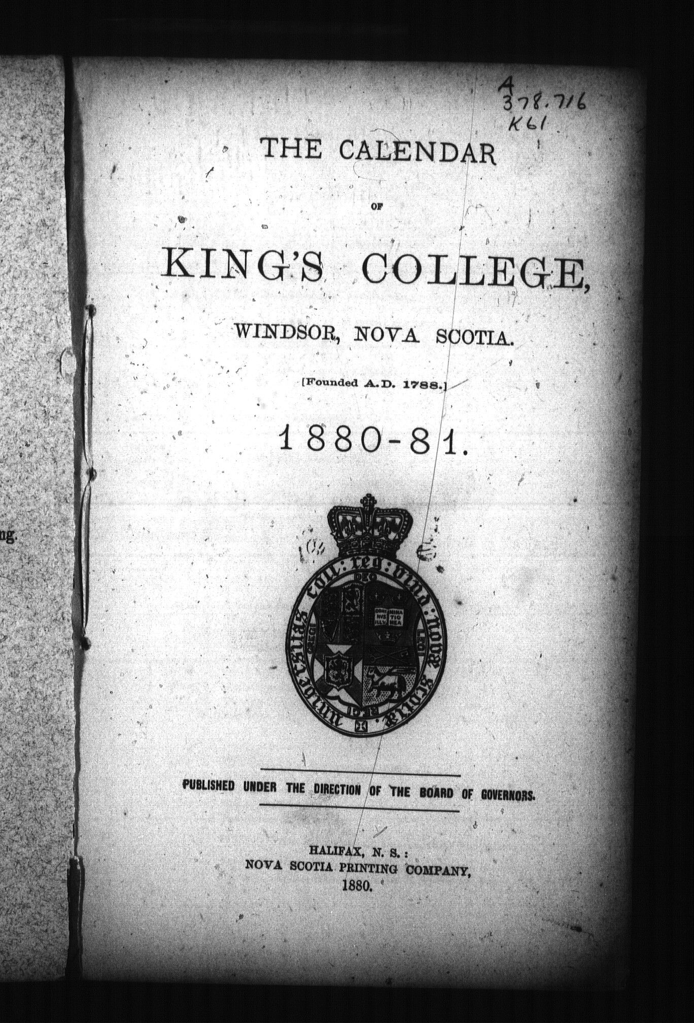 - The calendar of King's College, Windsor, Nova Scotia, 1880-81 : 1880/81