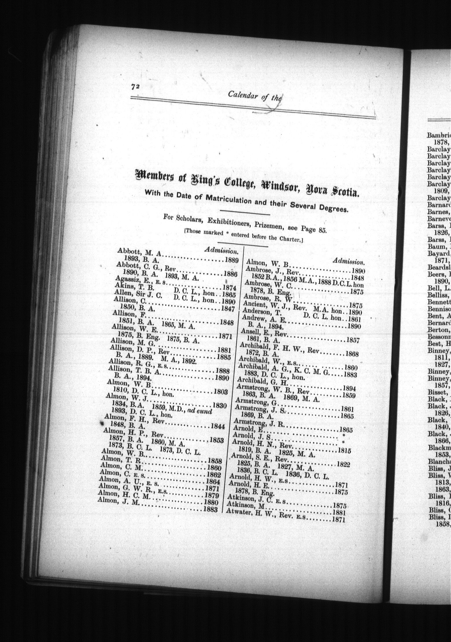 The calendar of King's College, Windsor, Nova Scotia for the year of our Lord ... : The calendar of the University of King's College, Windsor, Nova Scotia, 1894-95 : 1894/98