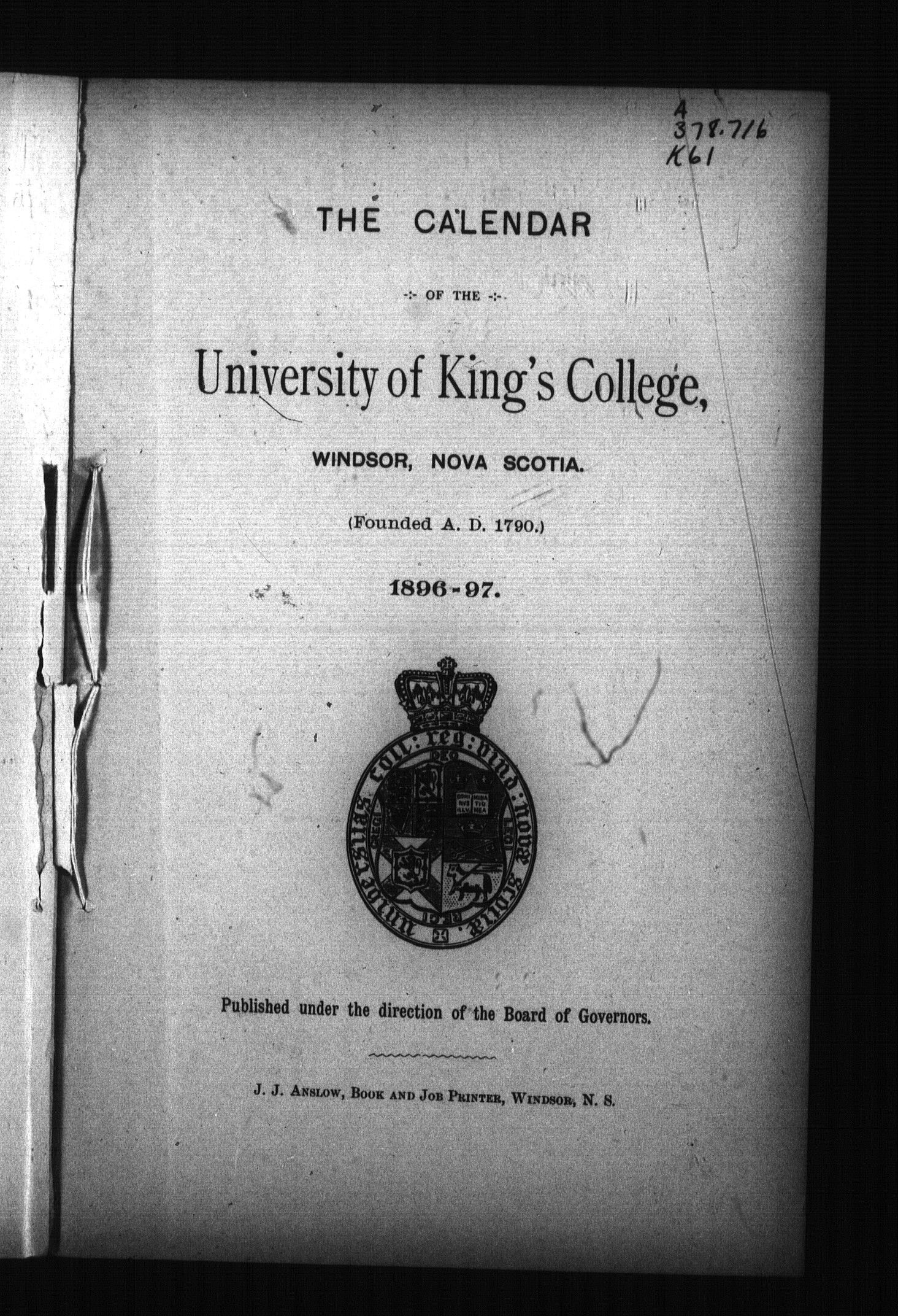 The calendar of the University of King's College, Windsor, Nova Scotia, 1896-97 : 1896/97
