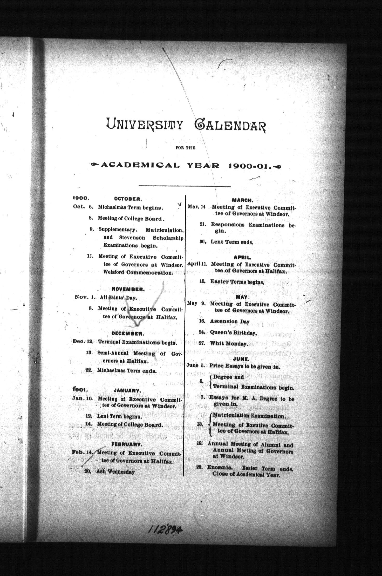 - Abridged calendar of the University of King's College, Windsor, Nova Scotia, 1900-01 : 1900/01