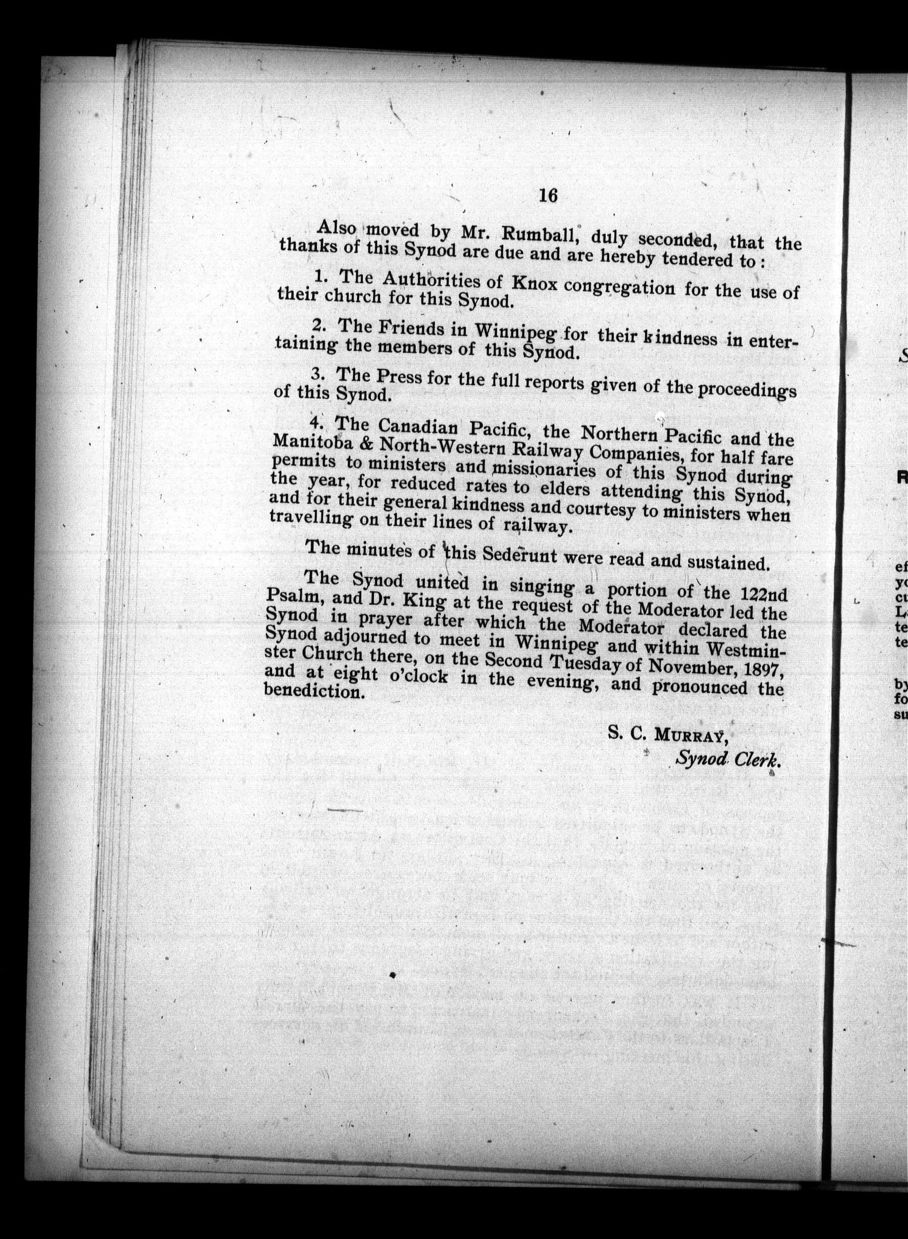 The acts and proceedings of the ... Synod of Manitoba and the North-West Territories of the Presbyterian Church in Canada : The acts and proceedings of the fourteenth Synod of Manitoba and the North-West Territories : held in Knox Church, Winnipeg, on the 10th, 11th, 12th and 13th days of November, 1896 : Fourteenth (1896)
