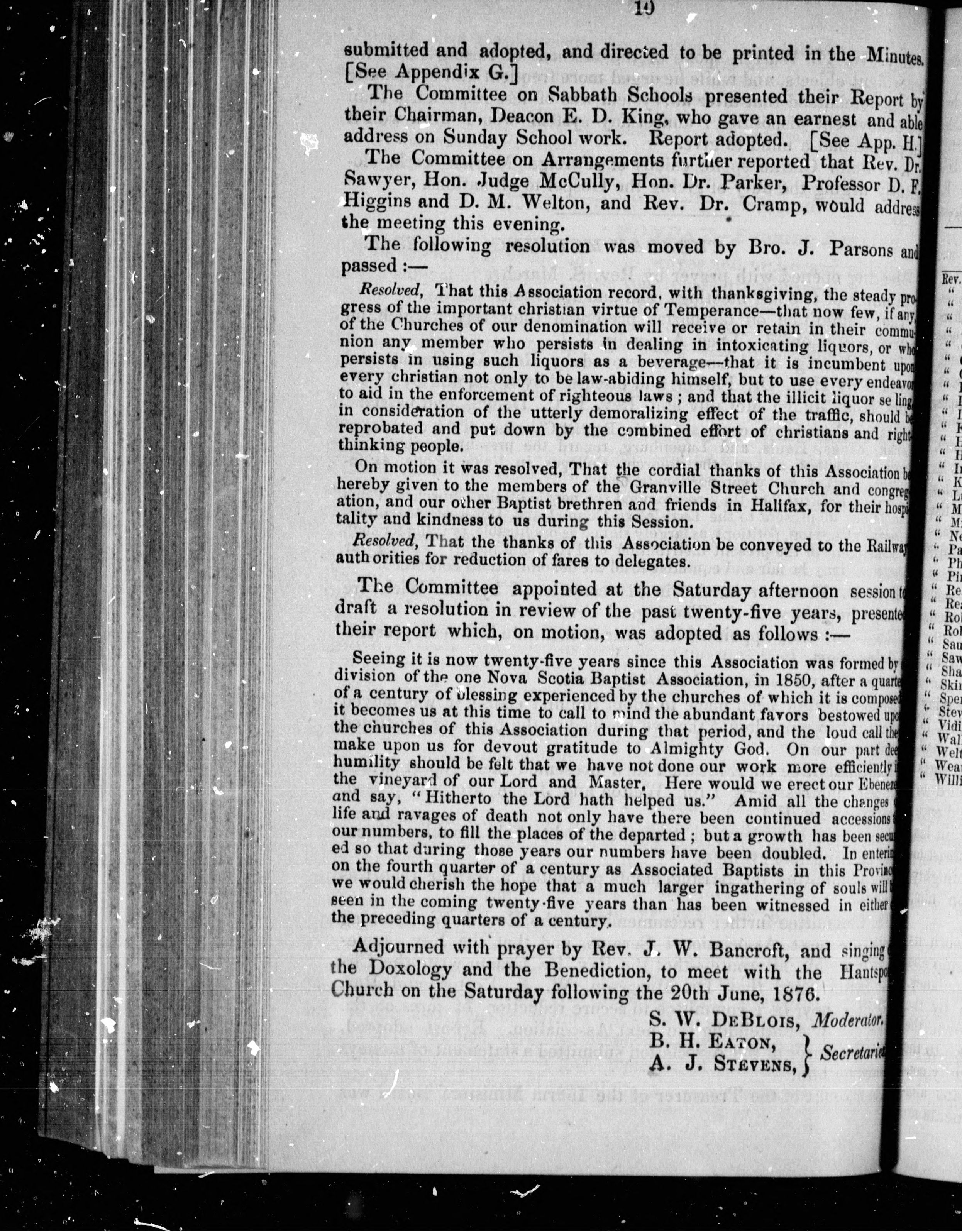 Minutes of the ... session of the Central Baptist Association, of Nova Scotia : Minutes of the twenty-fifth session of the Central Baptist Association of Nova Scotia : held with the [G]ranville Street Baptist Church at Halifax, Saturday, Monday, and Tuesday, June 26th, 28th and 29th, 1875 : Twenty-Fifth (1875)