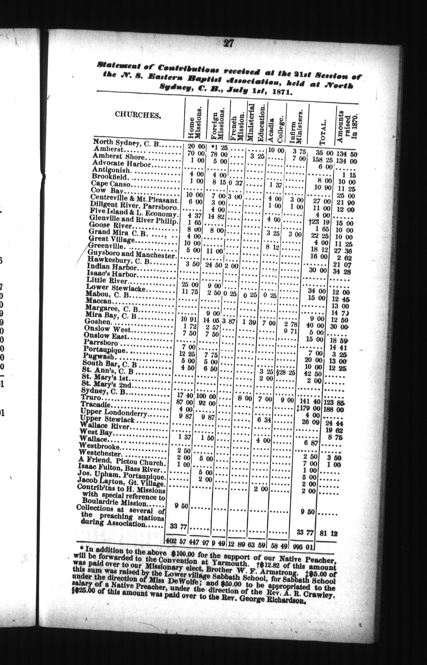 Minutes of the ... session of the Eastern Baptist Association of Nova Scotia : Minutes of the twenty-first session of the Eastern Baptist Association of Nova Scotia : held with the Baptist Church at North Sydney, C.B. Saturday, Monday, Tuesday, July 1st, r3d [sic], 4th, 1871 : Twenty-First (1871)