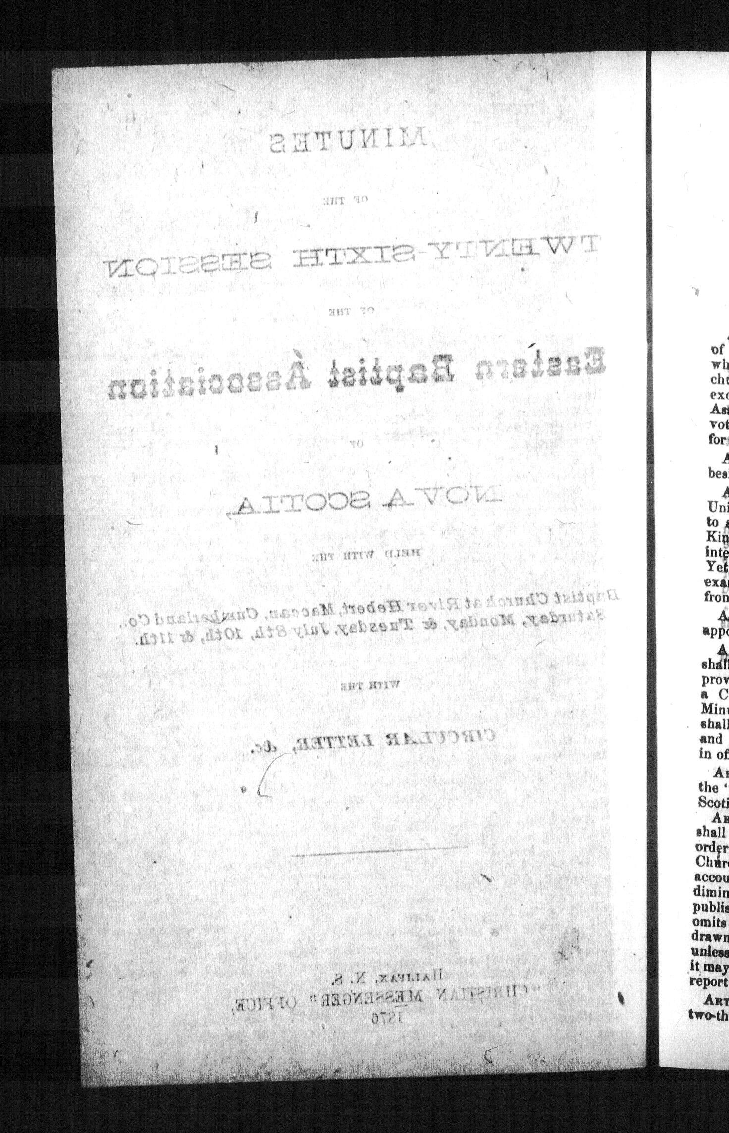 - [Halifax, N.S.?] : [Eastern Baptist Association of Nova Scotia. Session], 1876