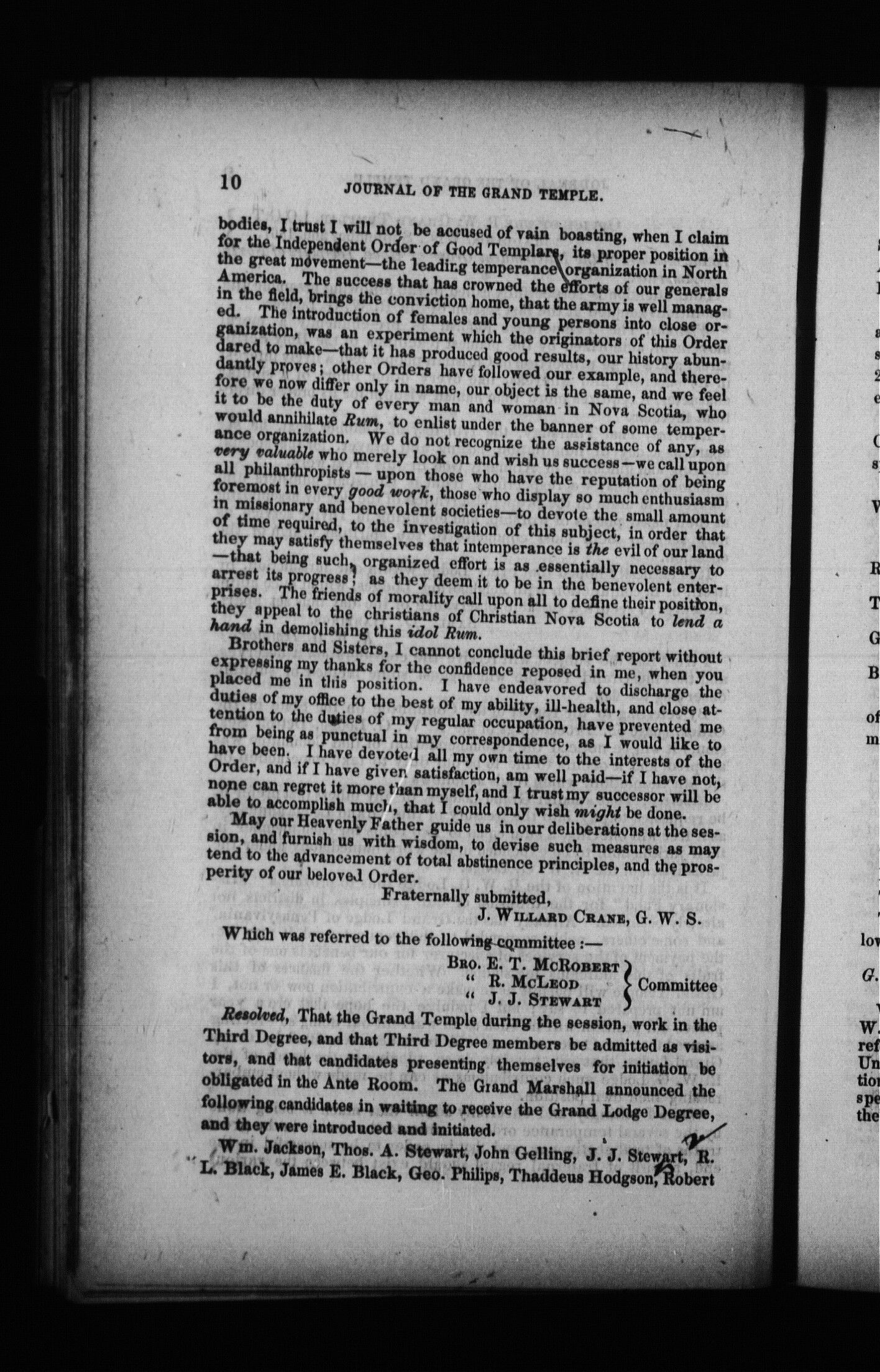 Journal of proceedings of the ... annual session of the Grand Temple, Independent Order of Good Templars, of the province of Nova Scotia : Journal of proceedings of the first annual session of the Grand Temple, Independent Order of Good Templars, of the province of Nova Scotia : held at River Philip, October 1st, 2nd & 3rd, 1867